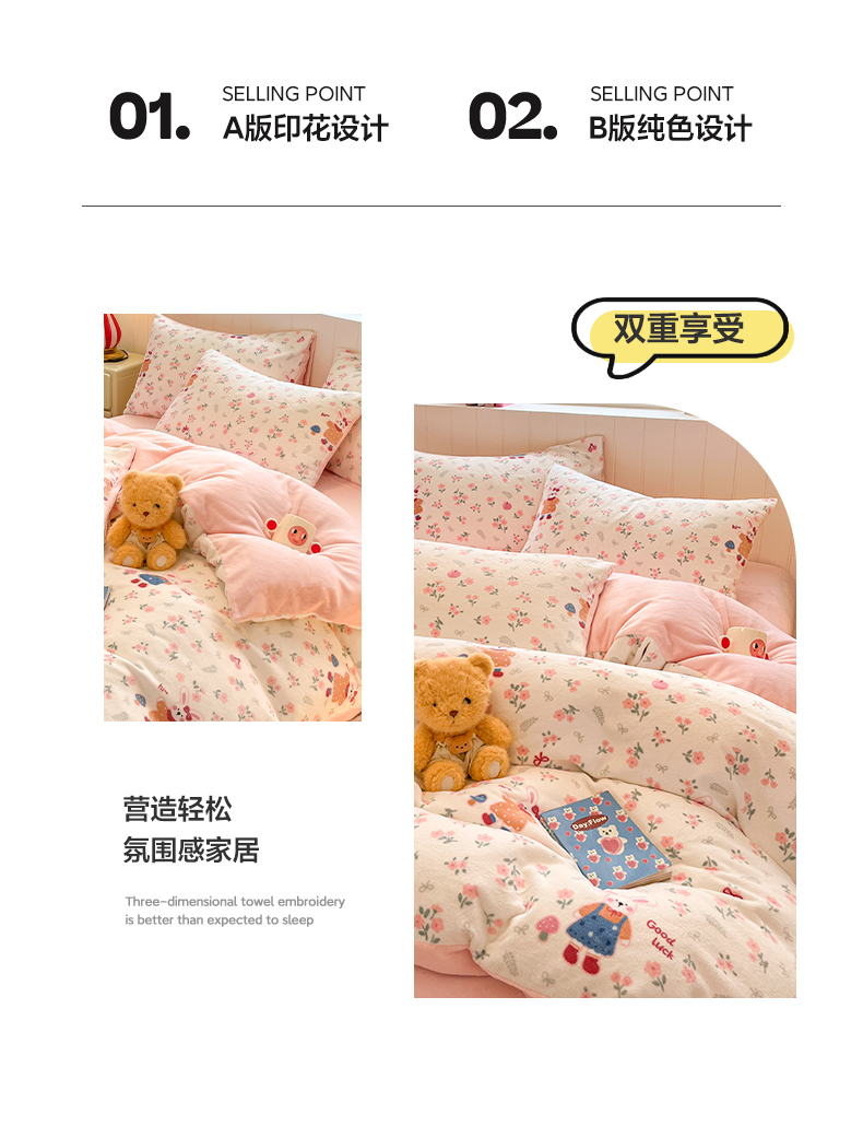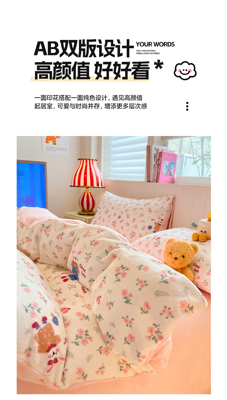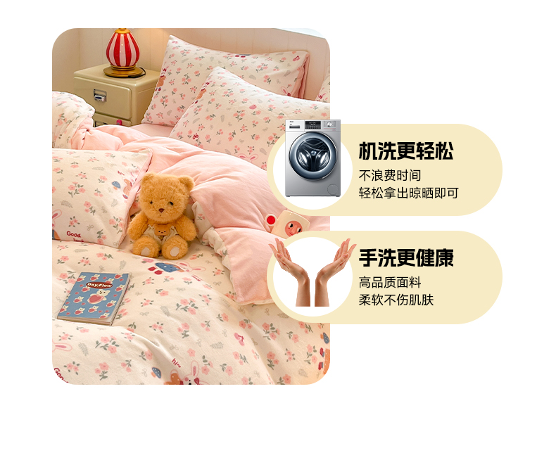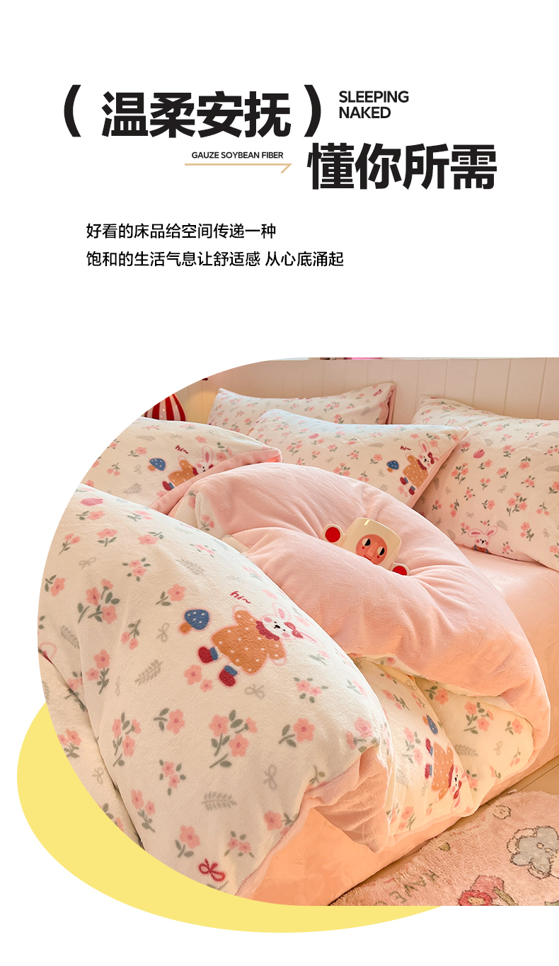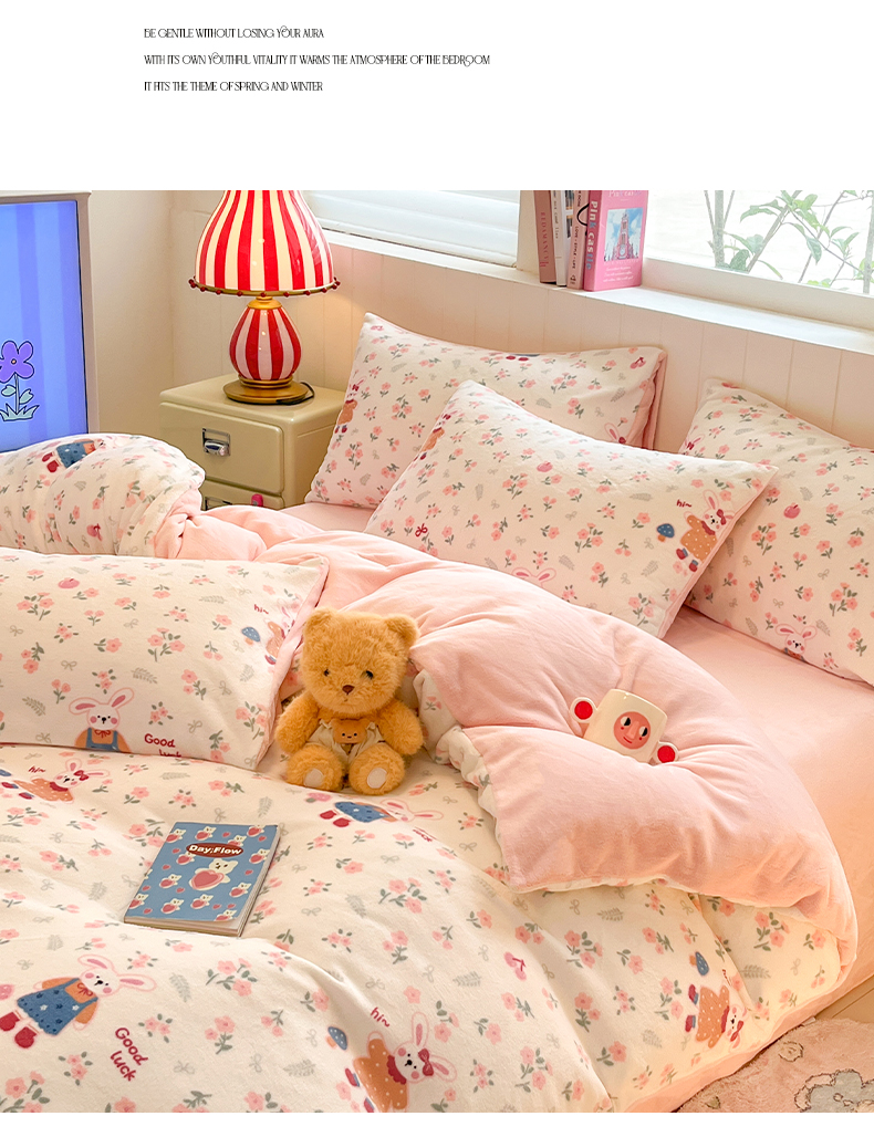 当前位置: 91家纺网 > 商品网购 > 床品套件 > 四件套 > 牛奶绒四件套 > 佳汐蓝家纺 2025新款190克高克重牛奶绒印花四件套 萌兔悠情+奶油粉