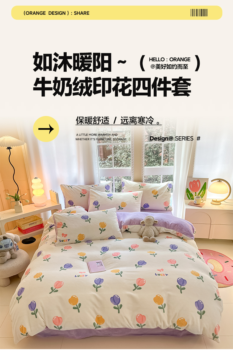 当前位置: 91家纺网 > 商品网购 > 床品套件 > 四件套 > 牛奶绒四件套 > 佳汐蓝家纺 2025新款190克高克重牛奶绒印花四件套 金香心语