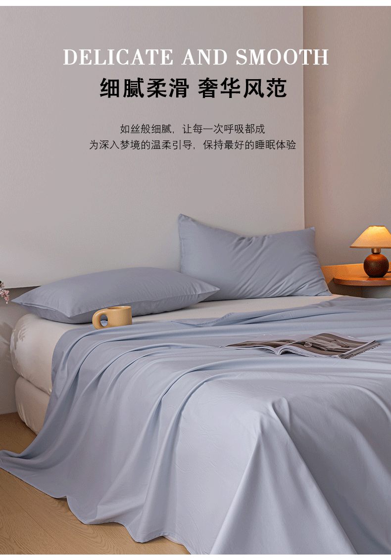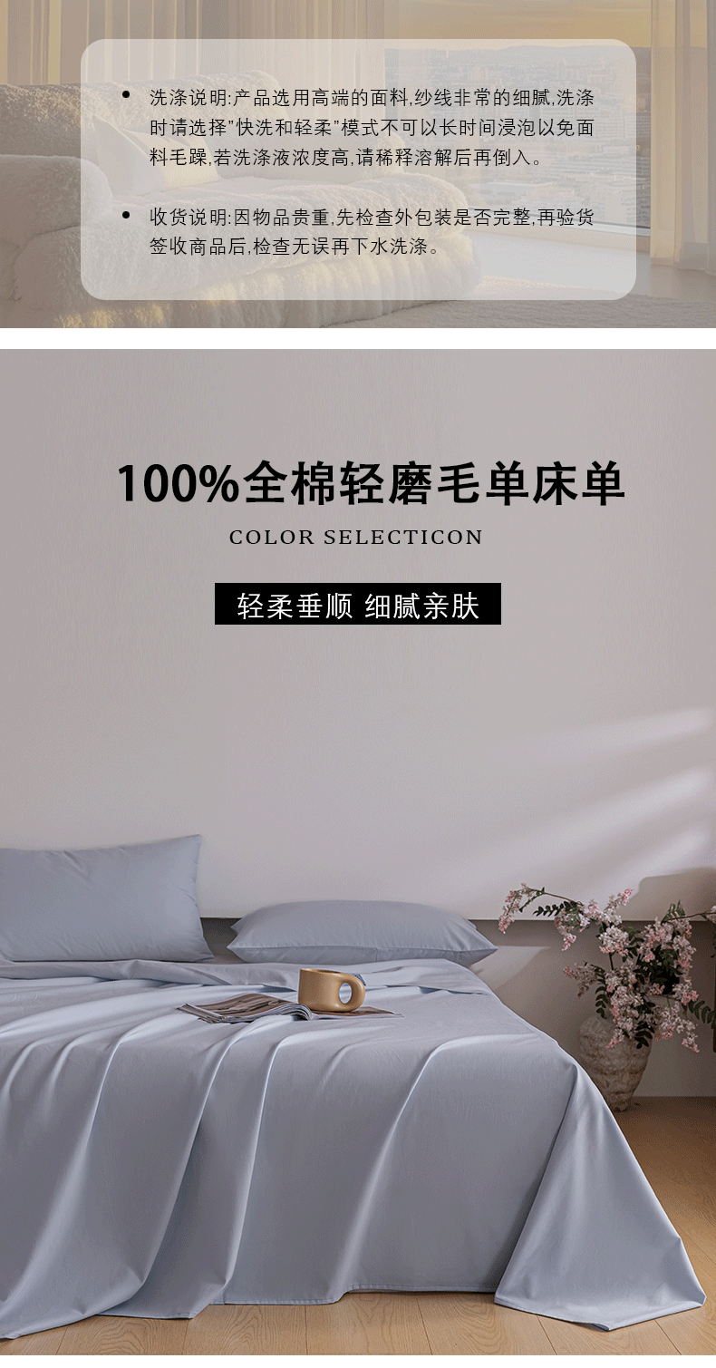 商品名称:618家纺 2025新款全棉100支磨毛单品四件套系列-单床单 灰蓝