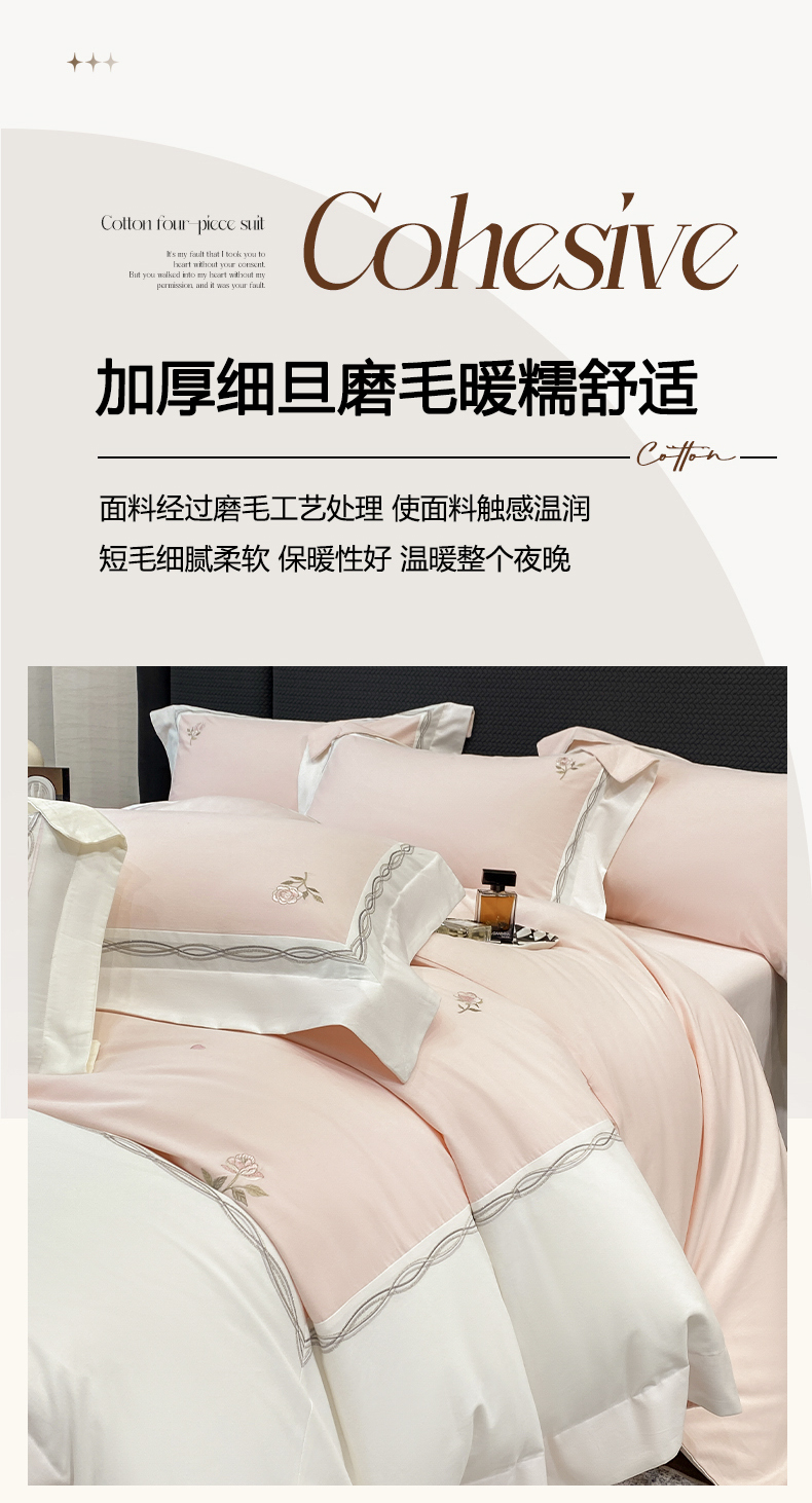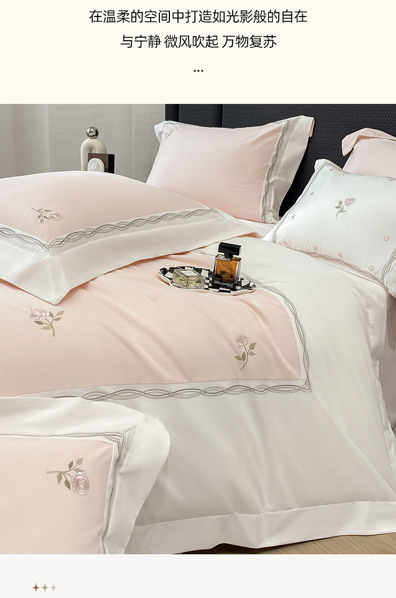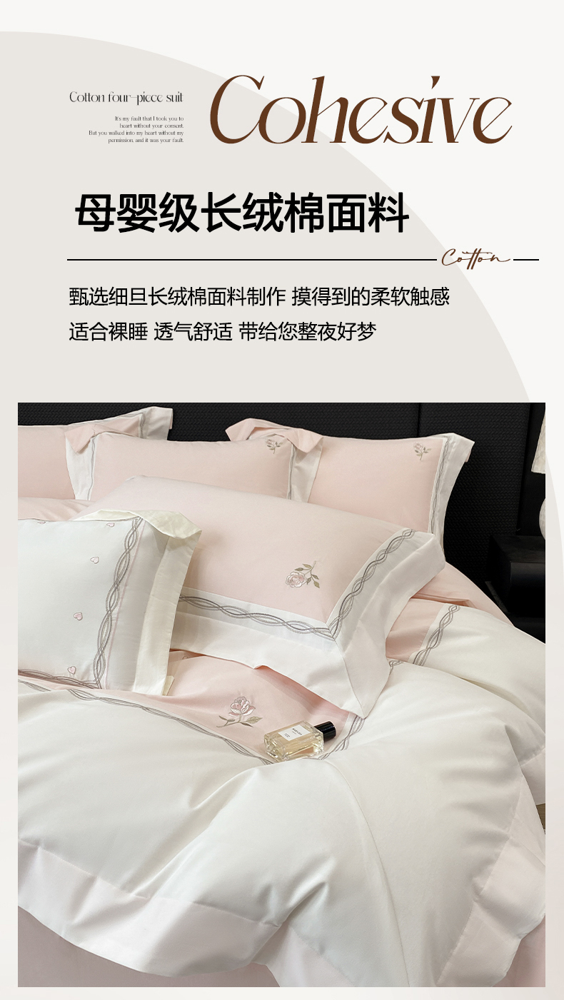 商品名称:丞音家纺 2025新款秋冬新款轻奢超细旦长绒棉细磨毛超柔加厚刺绣四件套纯棉全棉床单绣花床品床笠-艾薇尔系列 艾薇尔-桃花粉