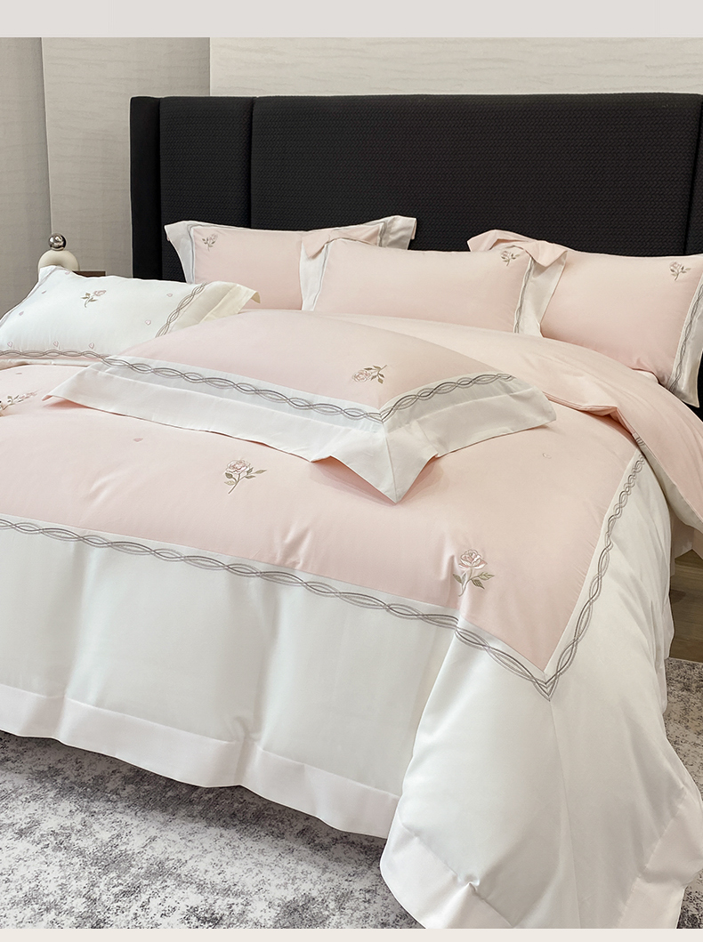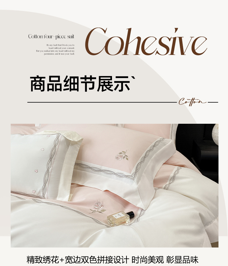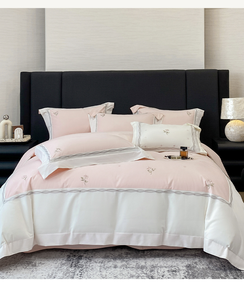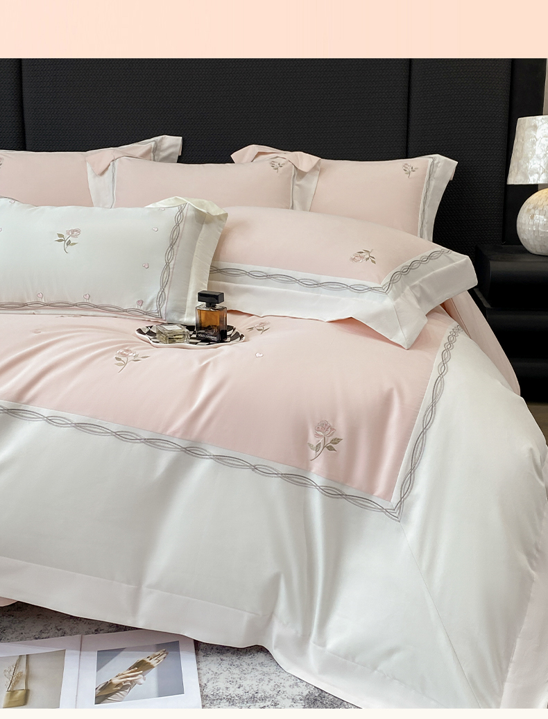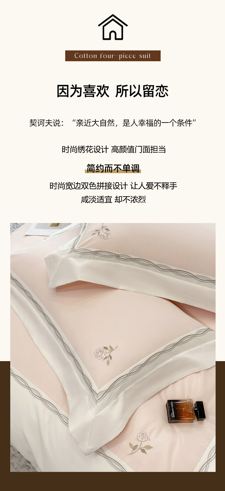 商品名称:丞音家纺 2025新款秋冬新款轻奢超细旦长绒棉细磨毛超柔加厚刺绣四件套纯棉全棉床单绣花床品床笠-艾薇尔系列 艾薇尔-桃花粉