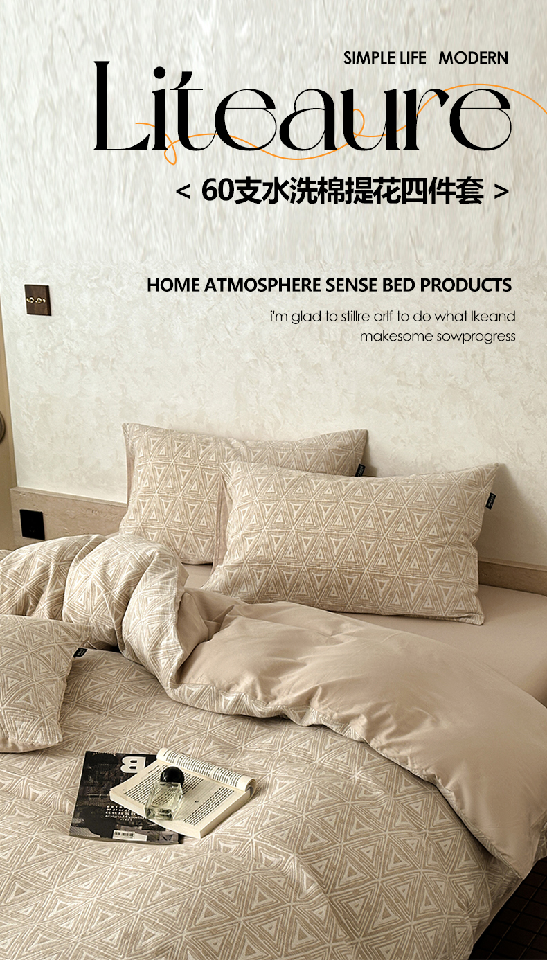 (总)宜代光年 2024新款开学季60支全棉水洗棉色织提花四件套,岸提-蓝灰,岸提-米,繁花-粉,繁花-绿,牡丹-粉,牡丹-咖,温差-灰,温差-米,雪花片-灰,雪片花-暖橘,枝繁叶茂-橘