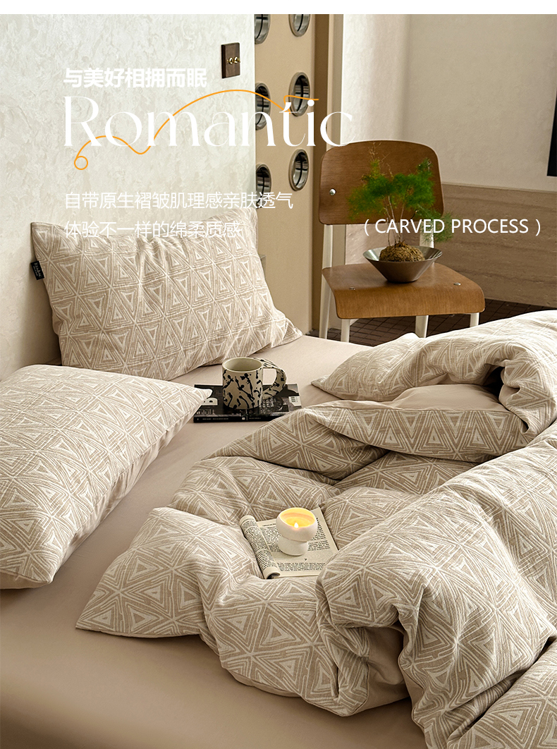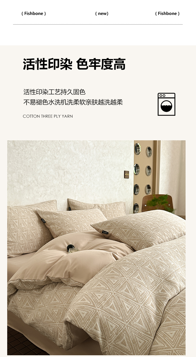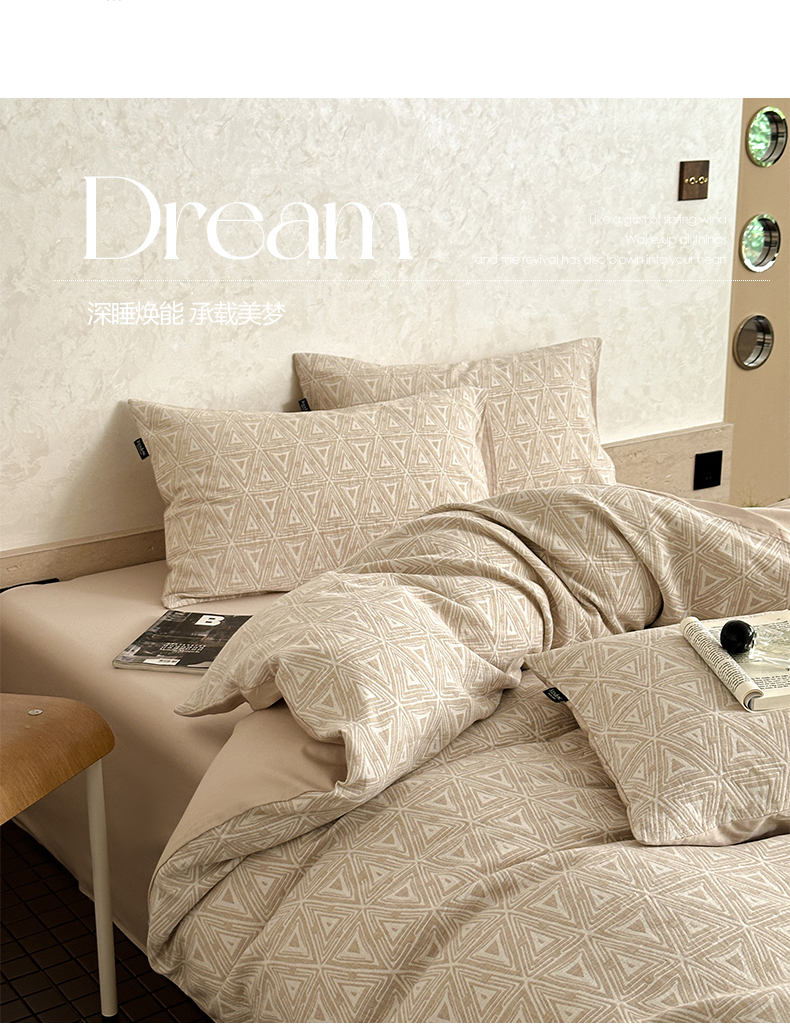 商品名称:宜代光年 2025新款色织水洗棉提花四件套(第一批) 岸堤-米