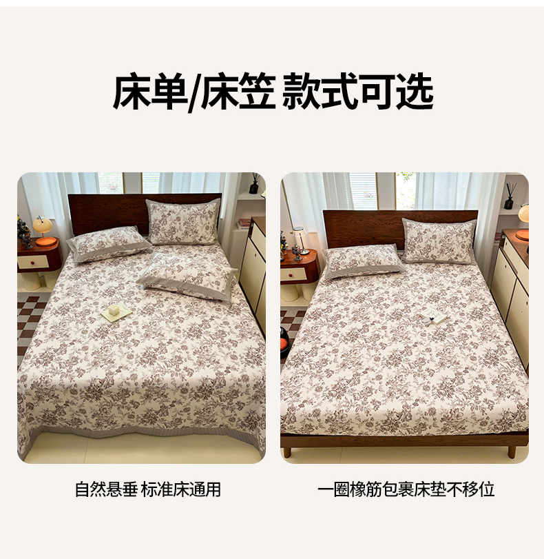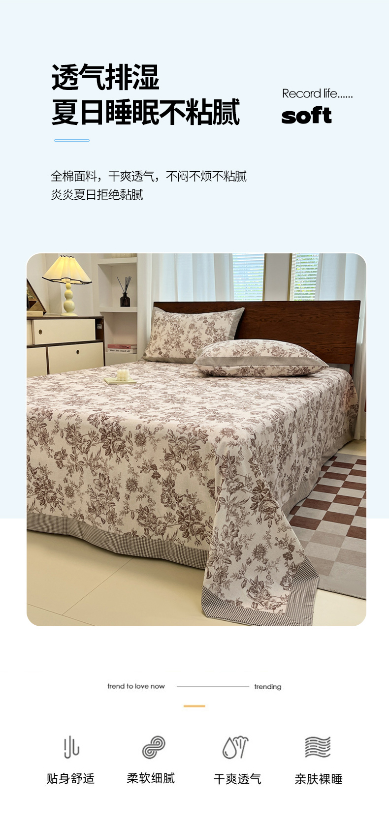 宜代光年 2025新款全棉老粗布数码印花拼角工艺床单床笠 床单-花汀