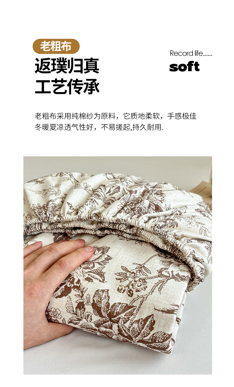 商品名称:宜代光年 2025新款全棉老粗布数码印花拼角工艺床单床笠 床单-花汀