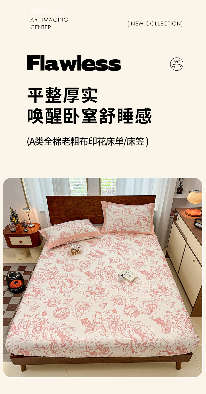 宜代光年 2025新款全棉老粗布数码印花拼角工艺床单床笠 床笠-伊洛