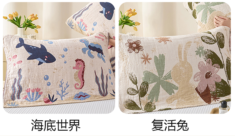 商品名称:棠薇家纺 2025新款纯棉纱布枕巾水洗全棉枕巾色织提花透气排汗预缩水 海底世界