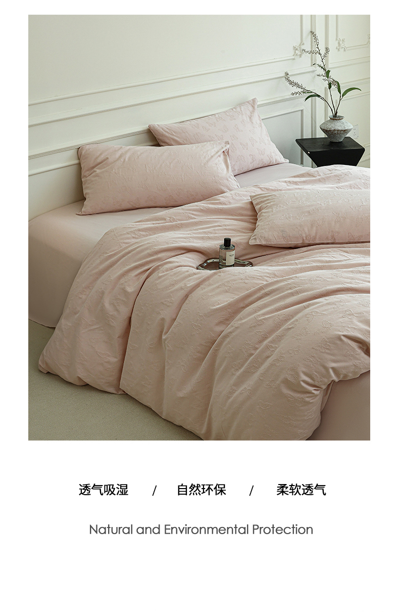 商品名称:宜代光年 2025新款厚织全棉大提花系列四件套 蝶梦悠悠-浅粉