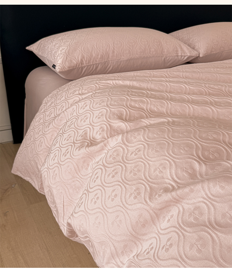 商品名称:宜代光年 2025新款厚织全棉大提花系列四件套 复古樱桃-浅粉