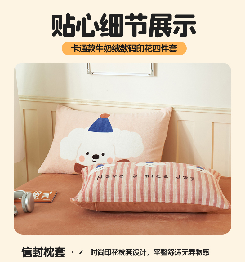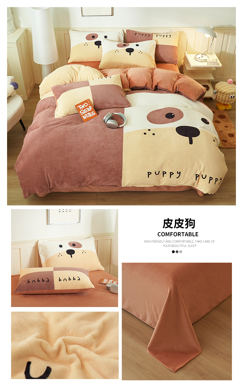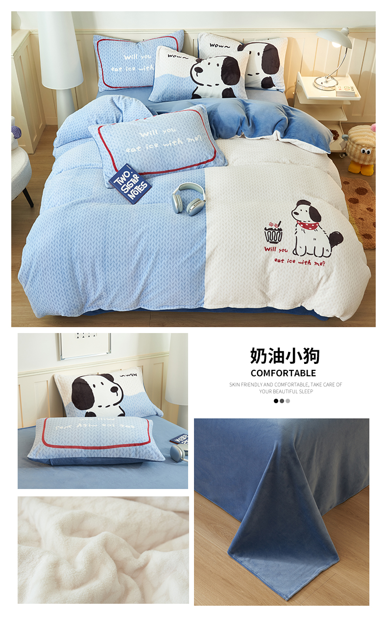 (总)金鹰 202新款A类数码印花卡通牛奶绒四件套,晚安,汪星人,腊肠狗,恋爱狗,猫咪咖啡,奶油小狗,皮皮狗,泰迪熊