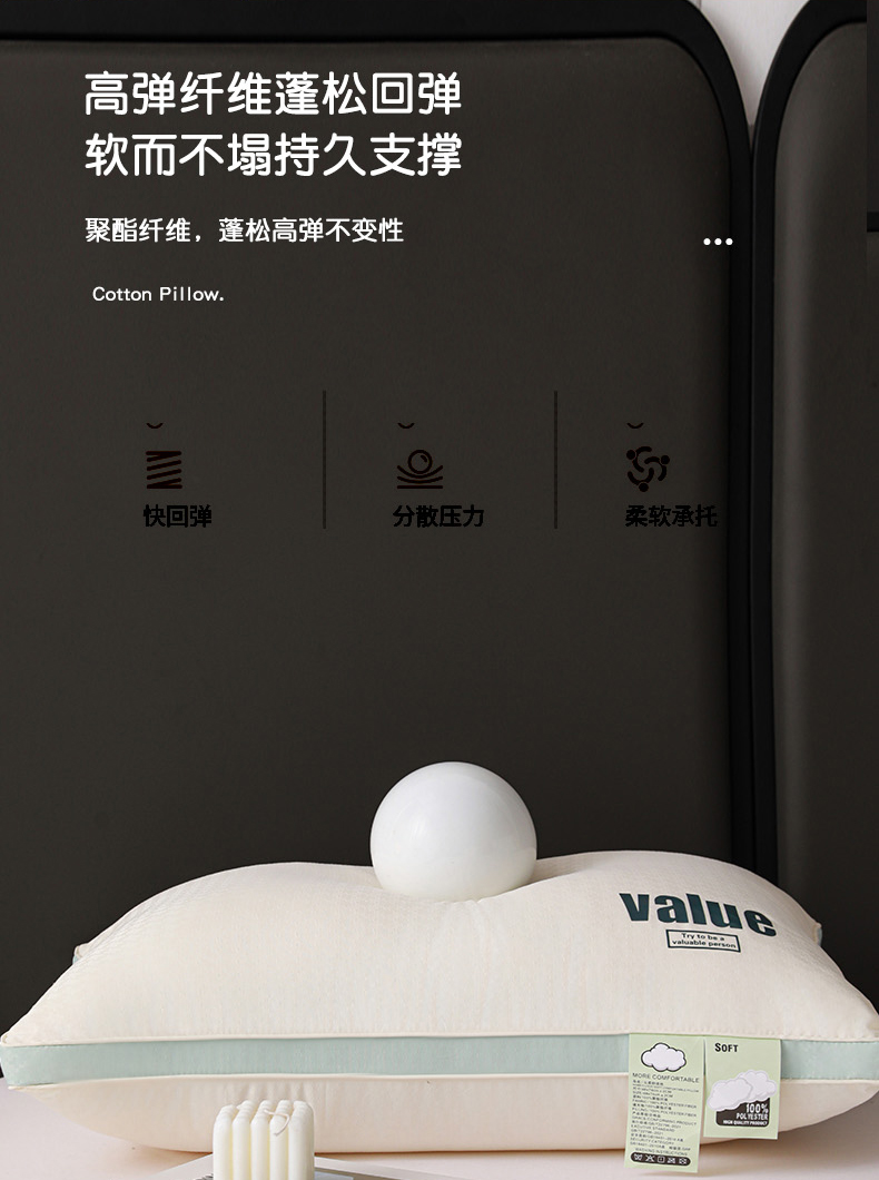 商品名称:亦帆枕芯 2025秋冬新款云感丝棉枕芯不塌陷超柔枕头定形立体单边枕 云感定形平枕