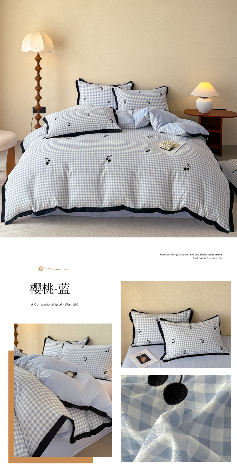 当前位置: 91家纺网 > 商品网购 > 床品套件 > 四件套 > 水洗棉四件套 > 米可 2025新款水洗棉绣花花边款四件套 樱桃-蓝