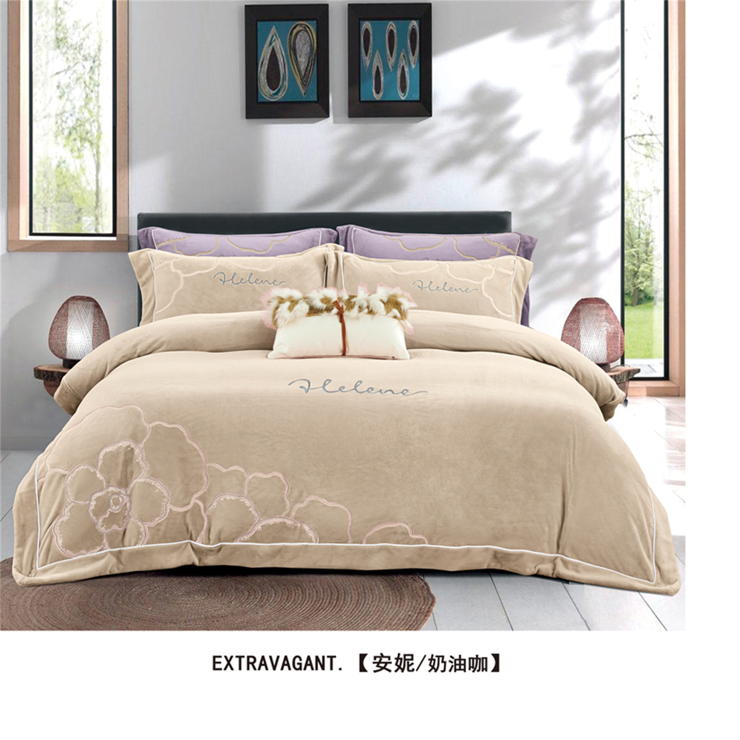 商品名称:芯丝路枕业 2025新款蚕丝棉四件套-安妮系列 奶油咖
