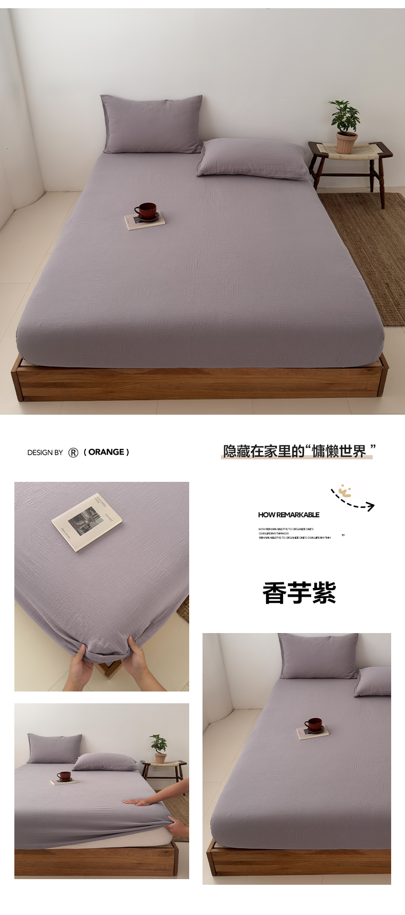 商品名称:玖弘家居 2025新款软糯皱皱纱单品床笠系列 香芋紫