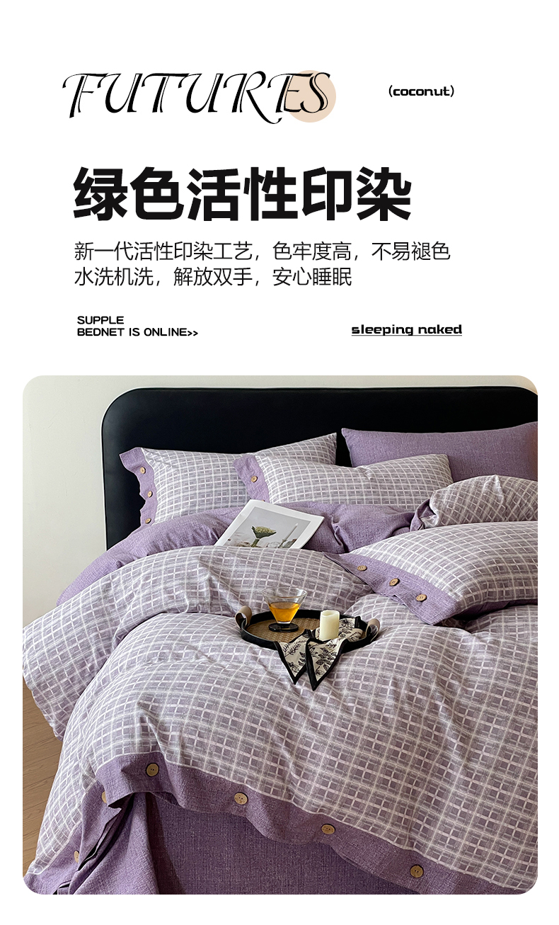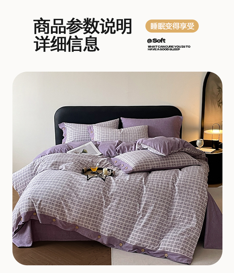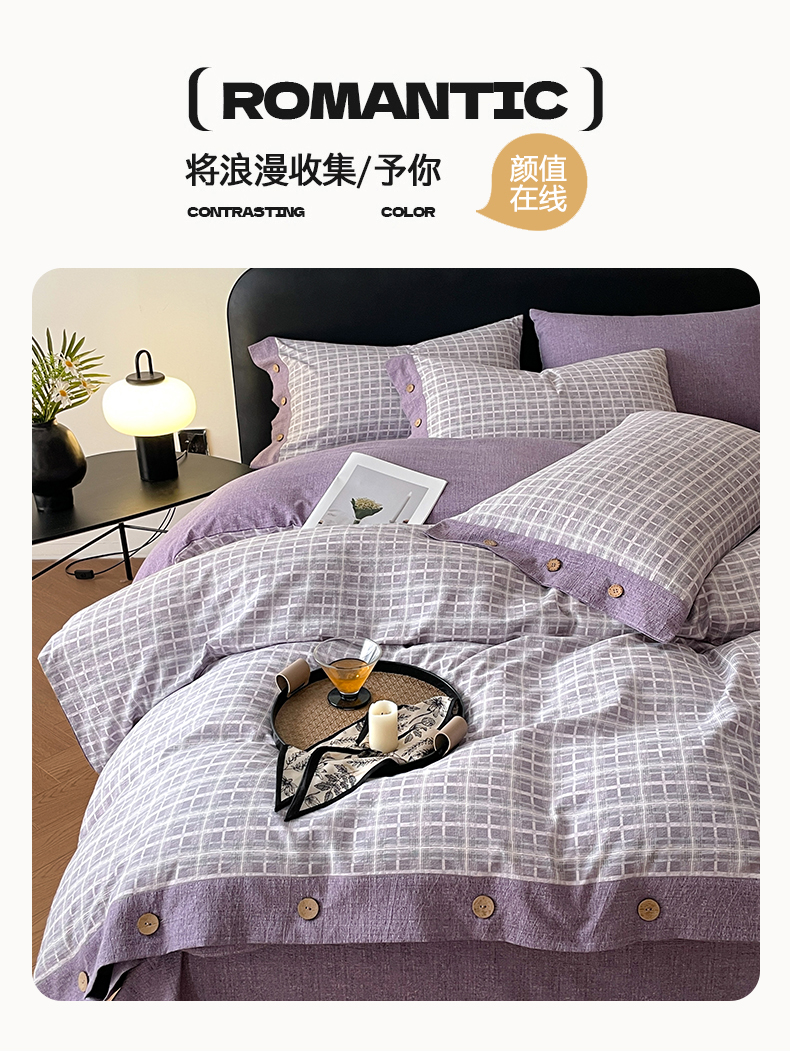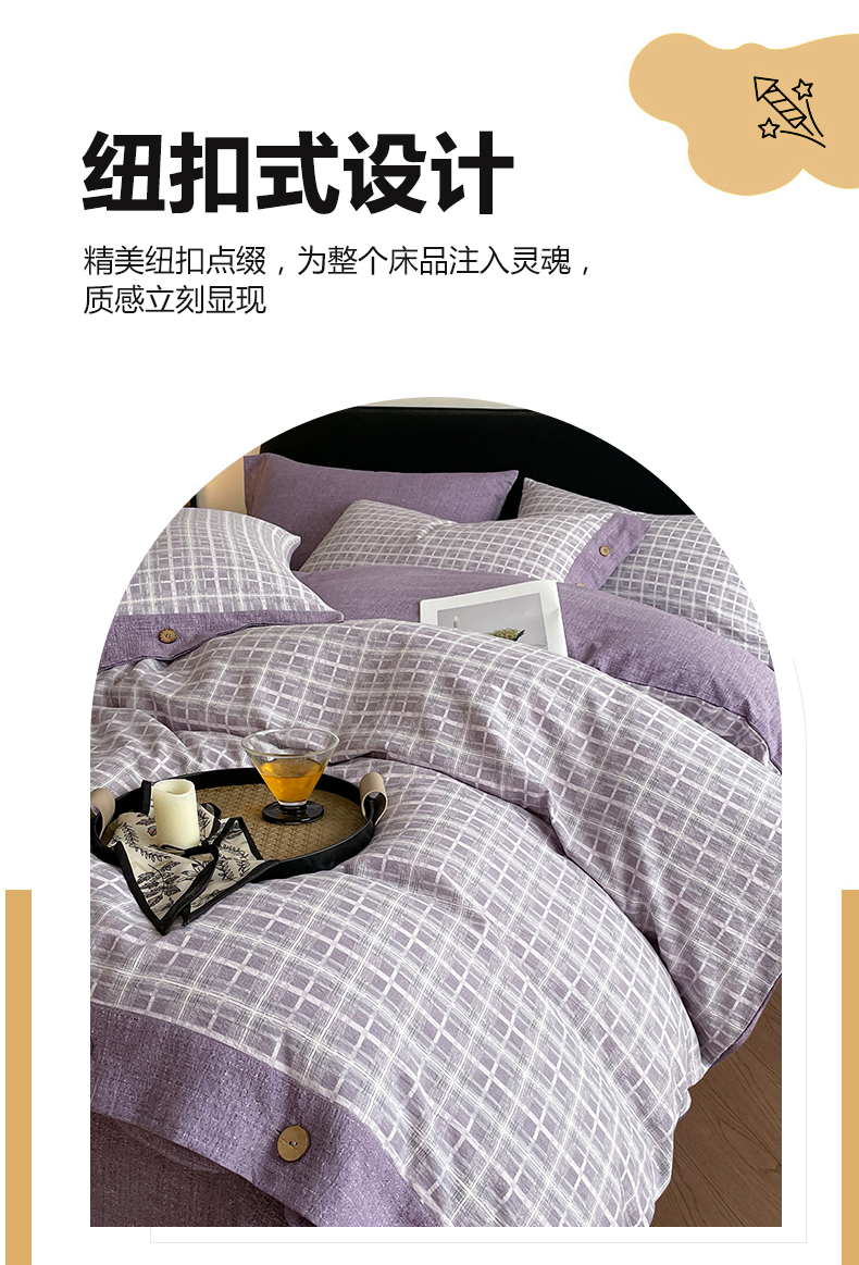 当前位置: 91家纺网 > 商品网购 > 床品套件 > 四件套 > 其它四件套 > 慕木家纺 2025新款日系原麻复古风纽扣款四件套 纽扣款-伯克利-紫