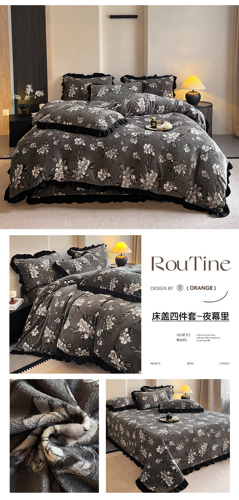 当前位置: 91家纺网 > 商品网购 > 床品套件 > 四件套 > 牛奶绒四件套 > 安哆啦家纺 2025新款法式赫本风牛奶绒床盖四件套 花影浅吟