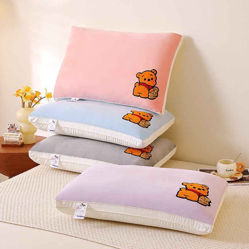 商品名称:木子晗 2025新款毛巾绣可爱卡通枕枕头枕芯-小熊嘟嘟 小熊嘟嘟-粉色