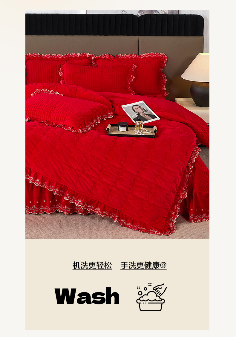 商品名称:默忆 2025新款婴儿绒宝宝绒玫瑰版床盖款四件套-慕达 慕达-红