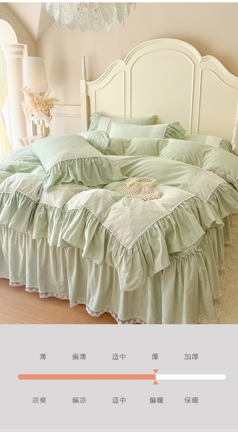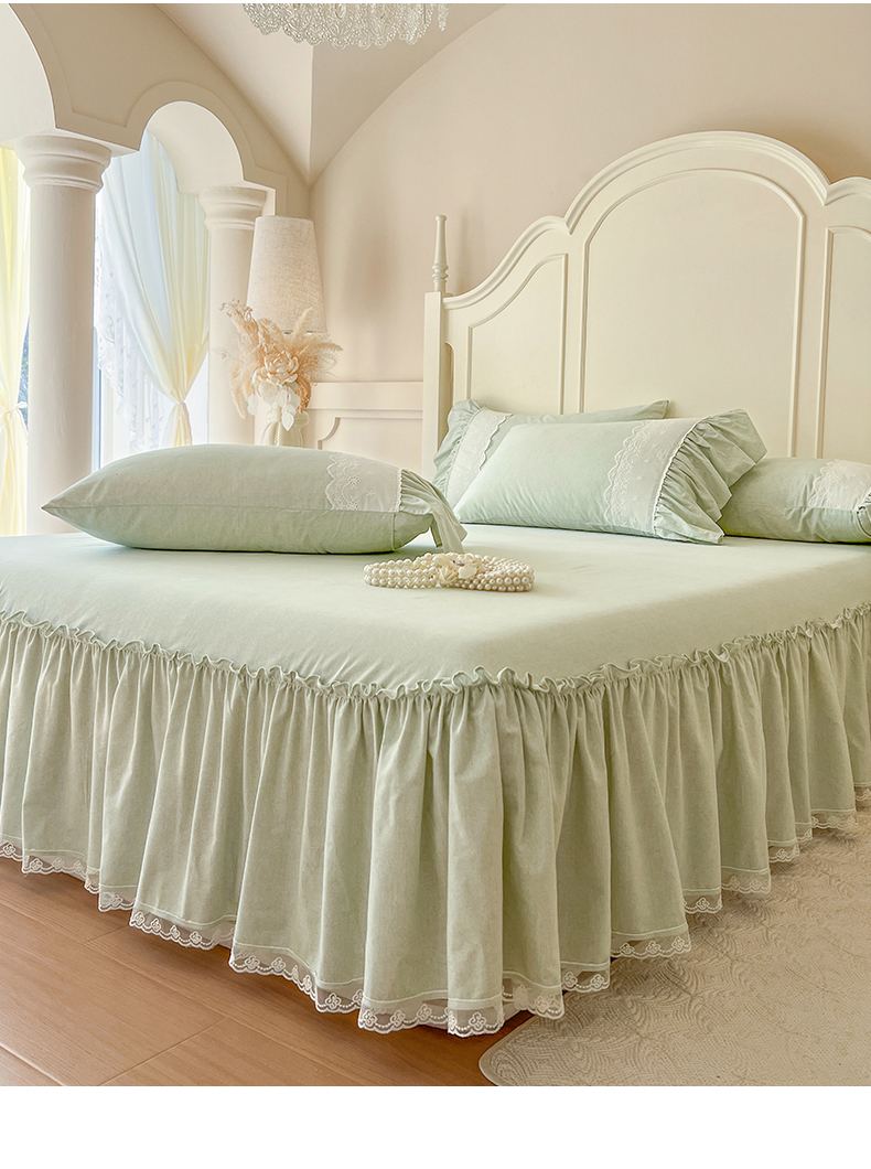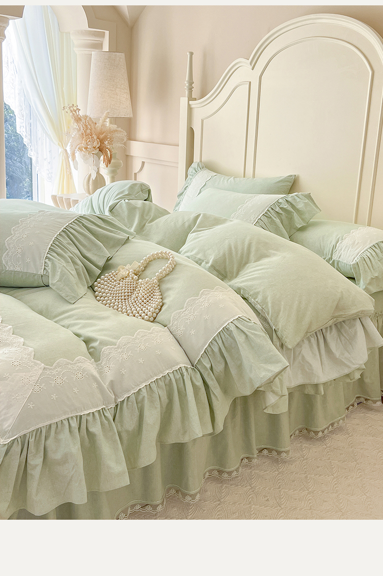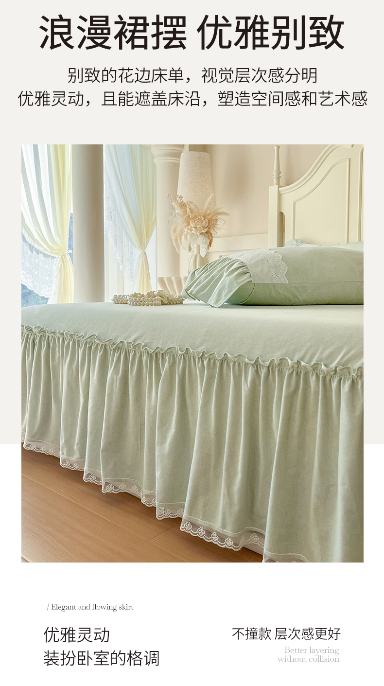 网红馆(ck家纺) 2025新款全棉磨毛蕾丝边花边四件套--梵妮系列 梵妮-牛油果绿