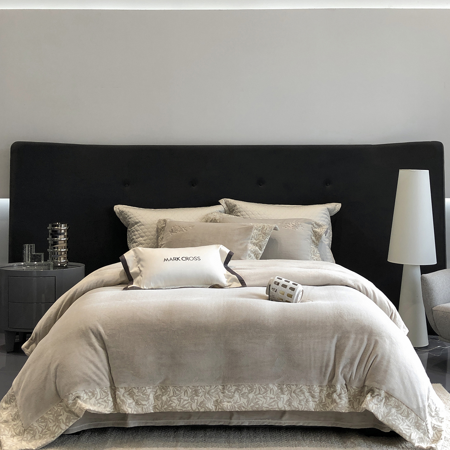 佳汐蓝家纺 2025新款熊极绒2.0重工色织大拼边系列四件套 游牧诗人-蔓纹棕