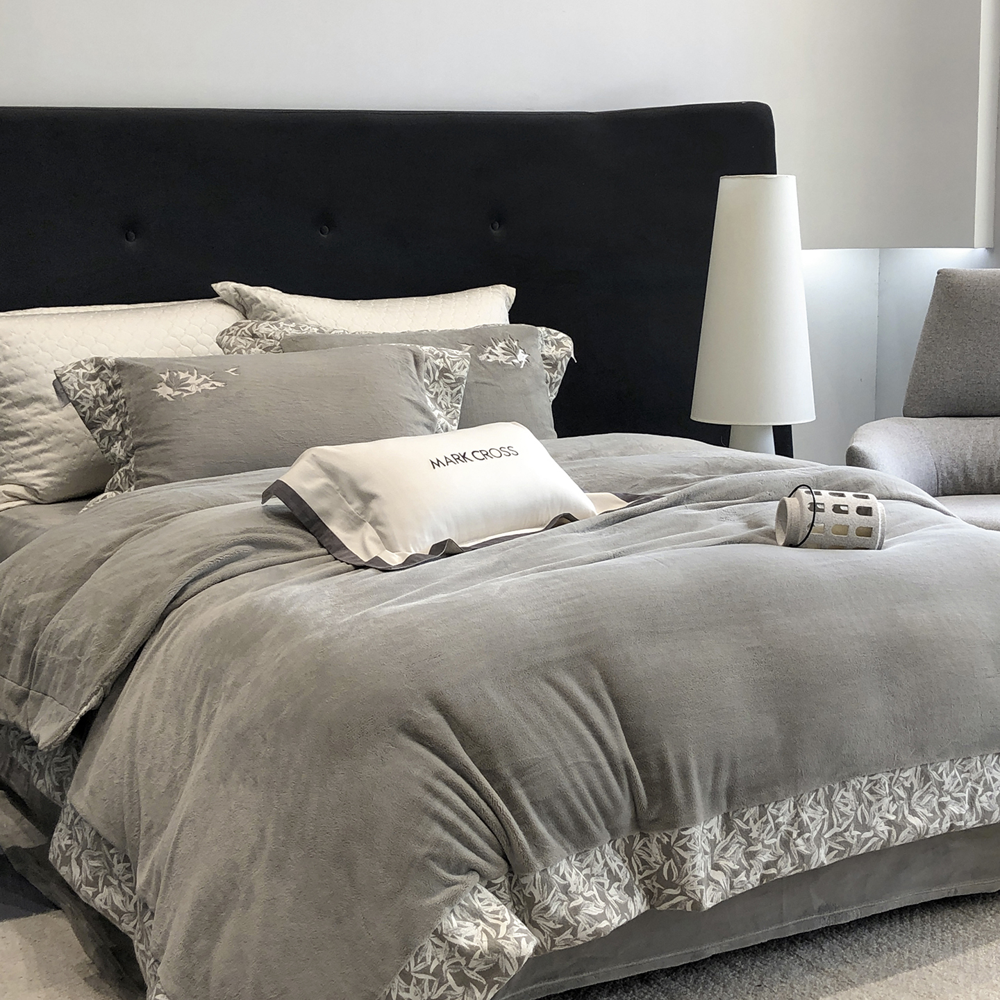 (总)佳汐蓝家纺 2026新款牛奶绒印花流光纱四件套-香奈(券后不低于328元),香奈
