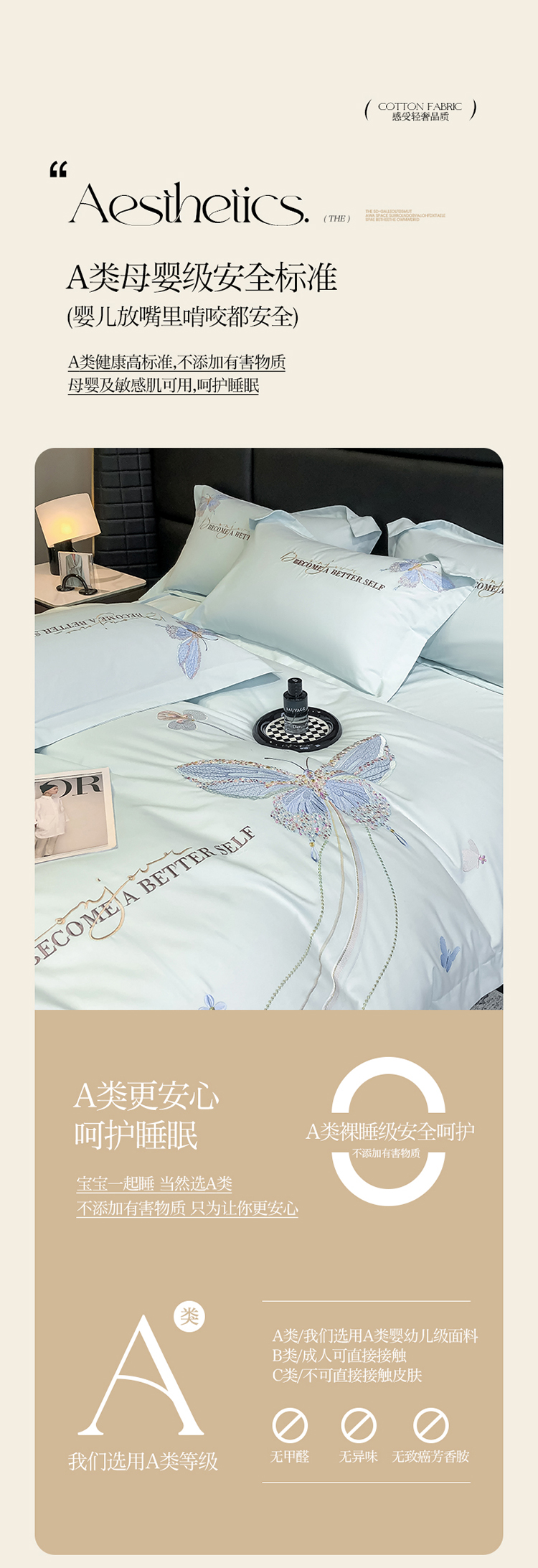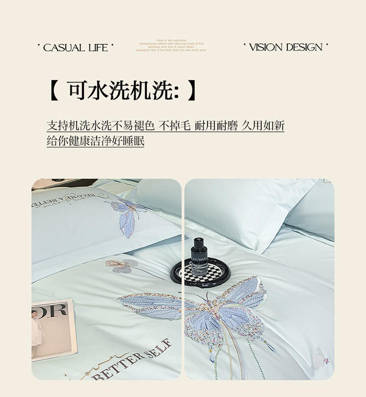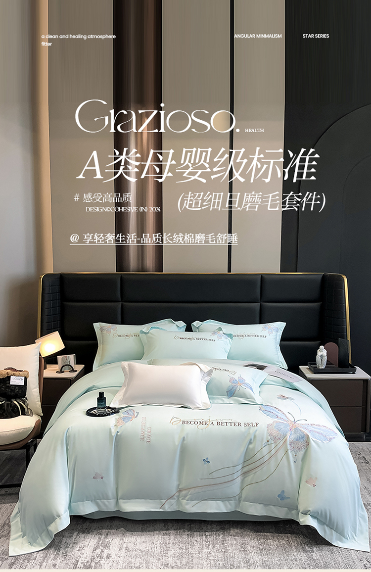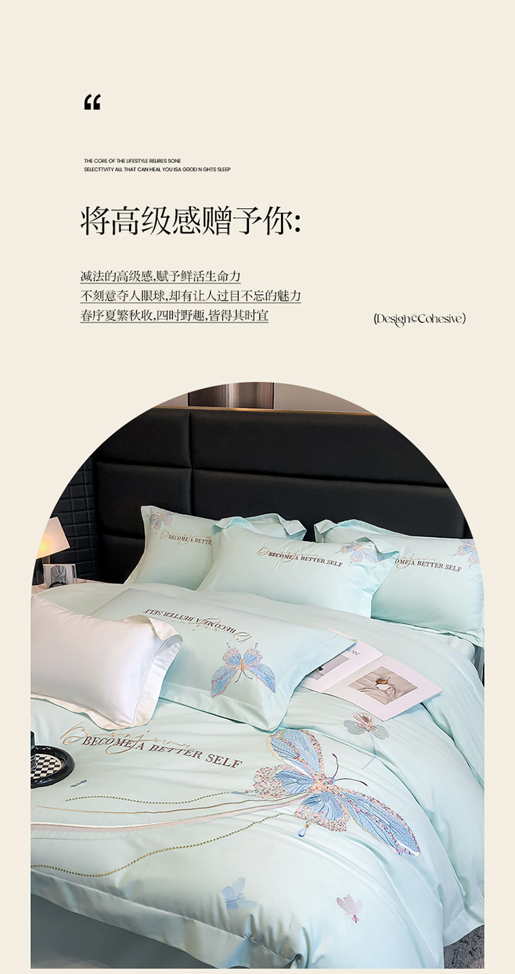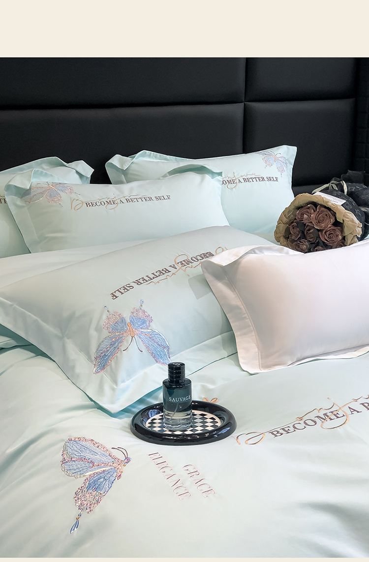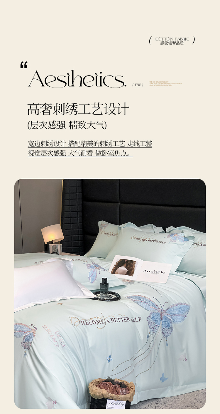 当前位置: 91家纺网 > 商品网购 > 床品套件 > 四件套 > 长绒棉四件套 > 高档礼盒装超细旦超柔长绒棉磨毛刺绣四件套秋冬加厚100%纯棉全棉床品 绮蝶-淡湖绿-A类超细旦长绒棉磨毛
