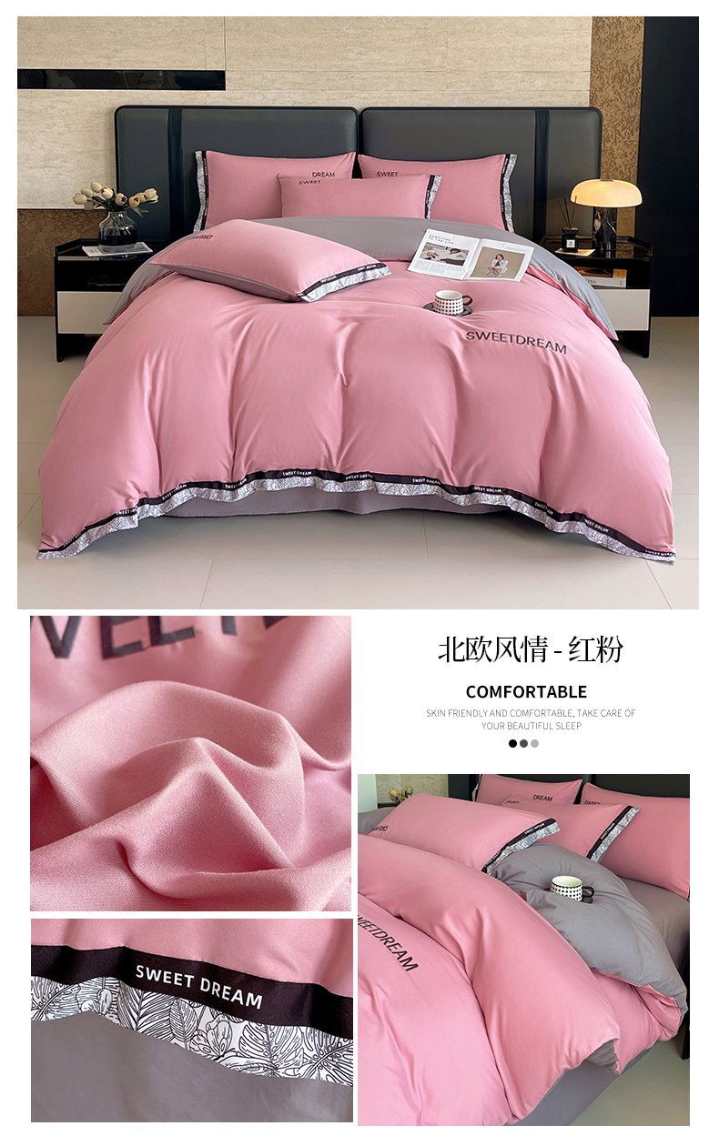 大麦乐田 2025新款法式轻奢碳素刺绣磨毛四件套-北欧风情 北欧风情 香粉玉