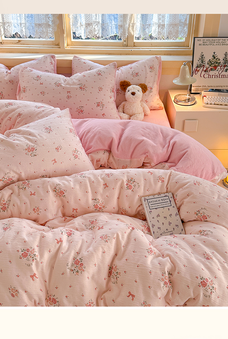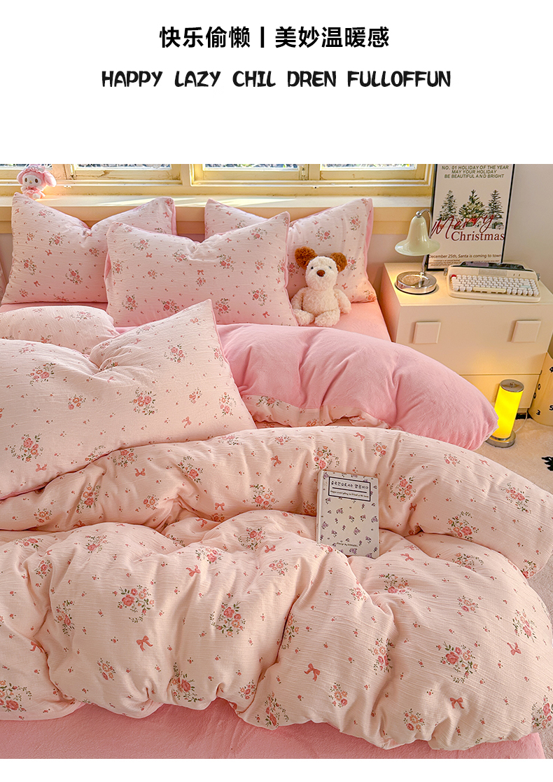玉海棠家纺 2025新款A版三层纱B版牛奶绒四件套系列 粉黛