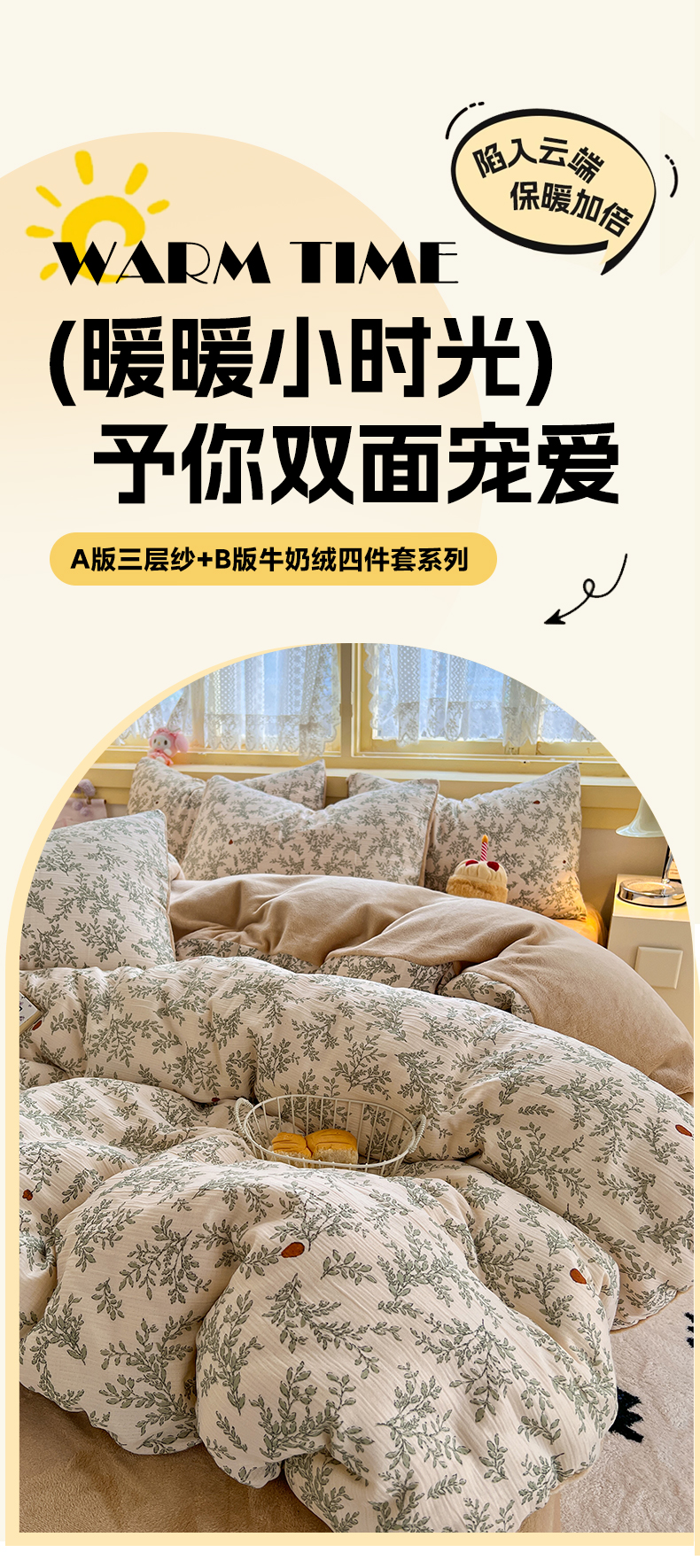 瑞钰 2025新款A版三层纱B版牛奶绒四件套系列 沐风
