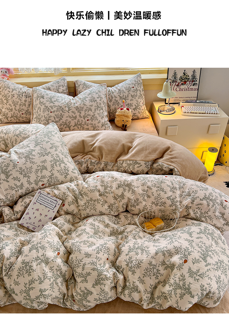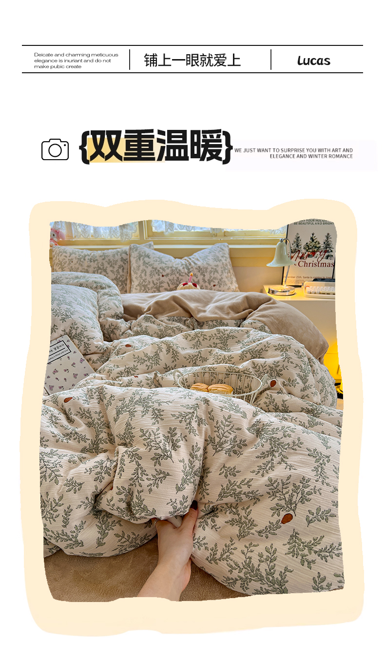商品名称:瑞钰 2025新款A版三层纱B版牛奶绒四件套系列 沐风