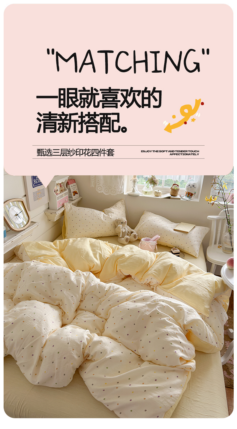 当前位置: 91家纺网 > 商品网购 > 床品套件 > 四件套 > 其它四件套 > 玉海棠家纺 2025新款甄选三层纱印花四件套 彩波波