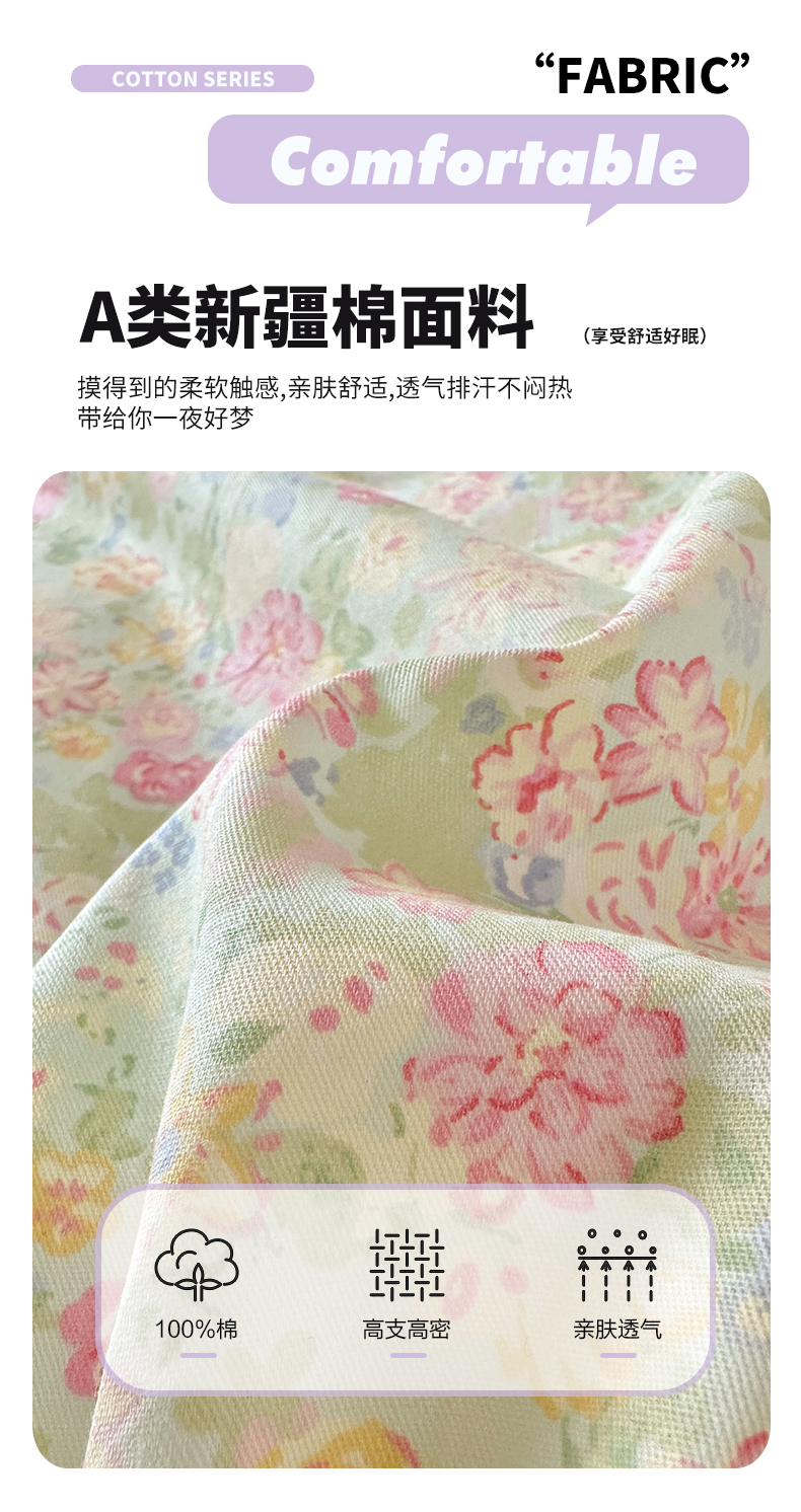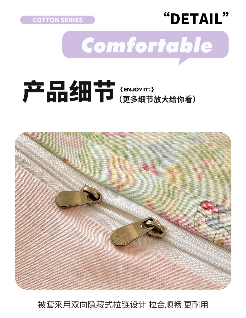 当前位置: 91家纺网 > 商品网购 > 床上用品 > 被套 > 拾物记 2026新款第一批12868A类新疆全棉单品被套系列(预留7-9厘米的缩水尺寸,加厚金属双拉链头、暗线四面锁边,四角全棉绑带) 美梦花园