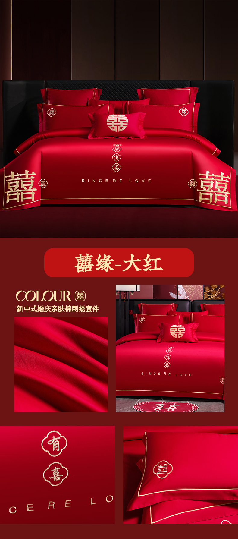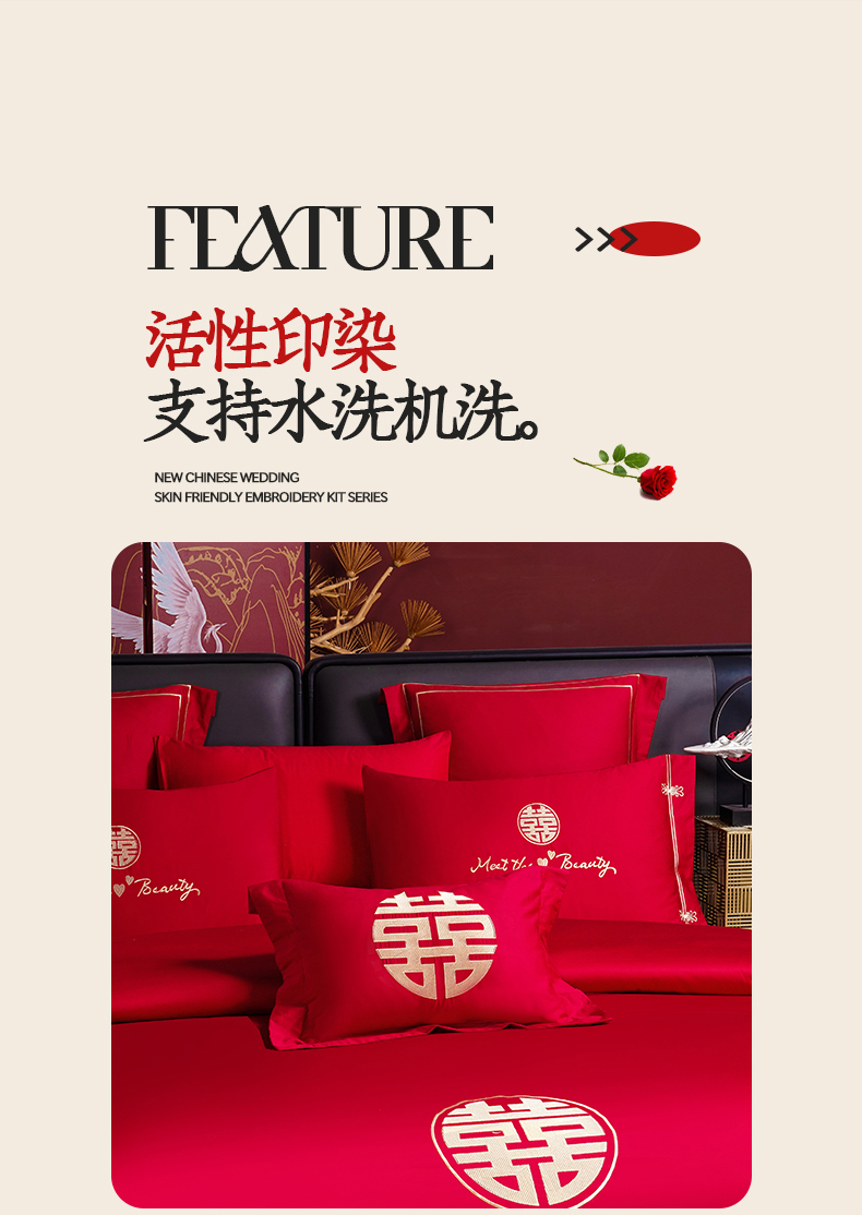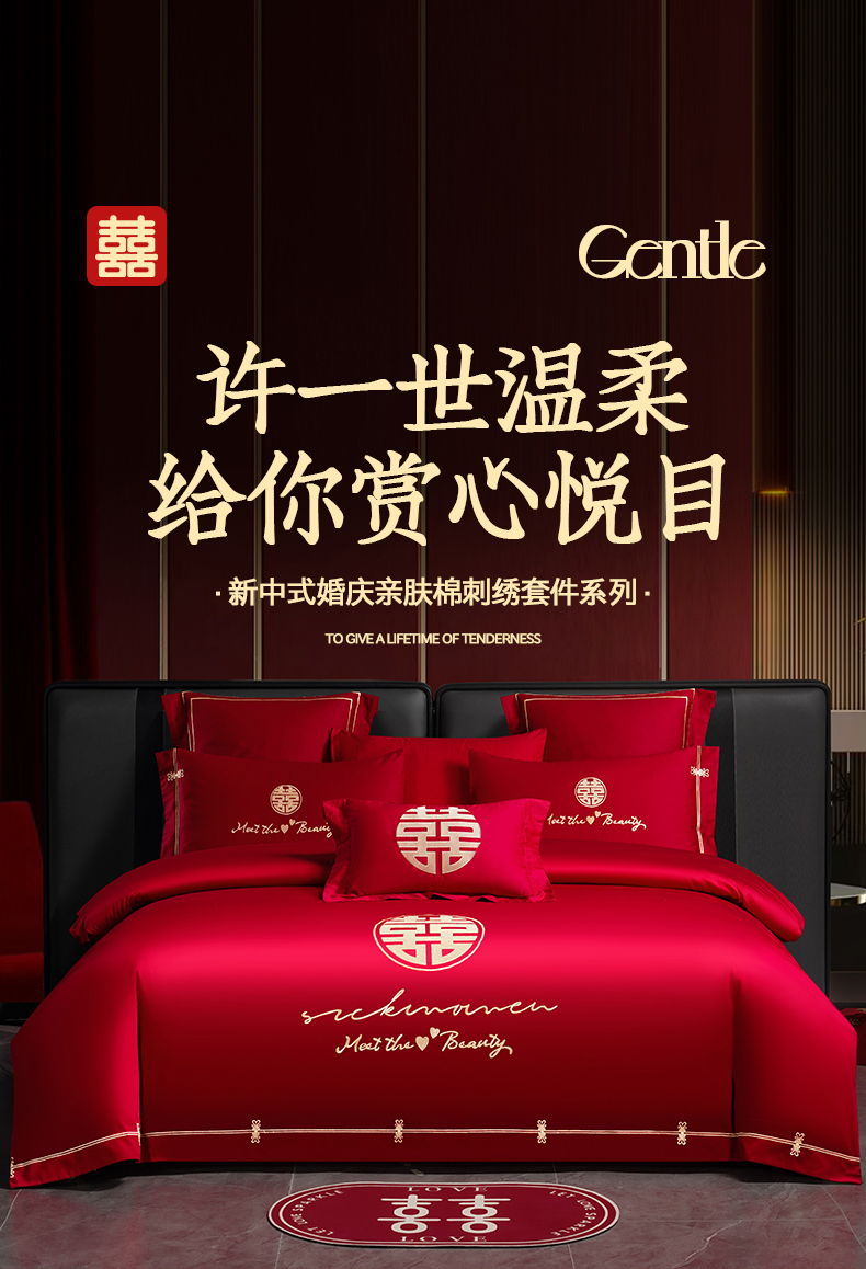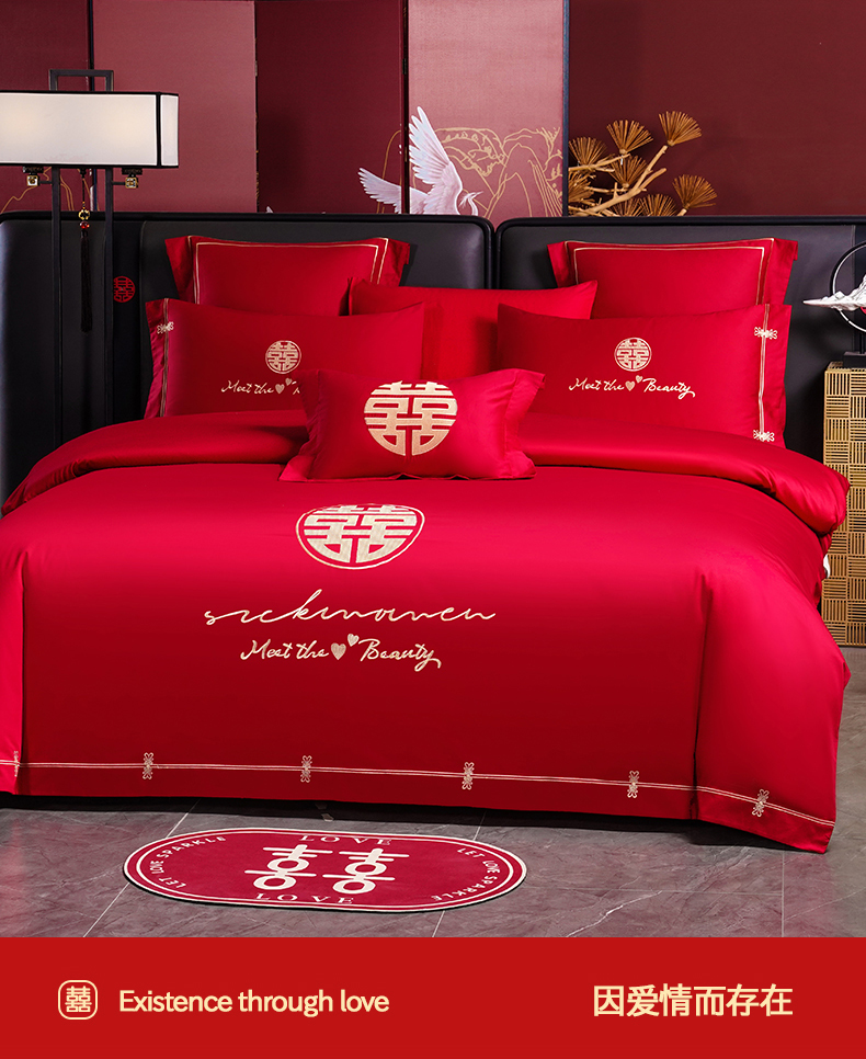 当前位置: 91家纺网 > 商品网购 > 床品套件 > 四件套 > 婚庆四件套 > 置顶家纺 2025新款新中式棚拍亲肤棉婚庆大红刺绣系列四件套 幸福婚礼-大红