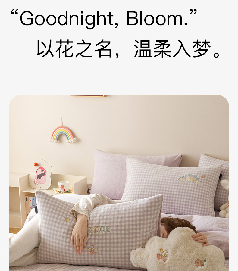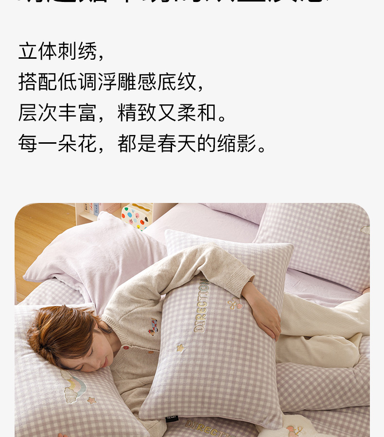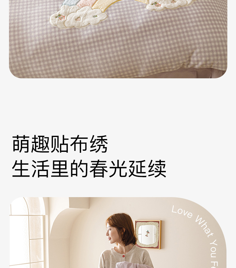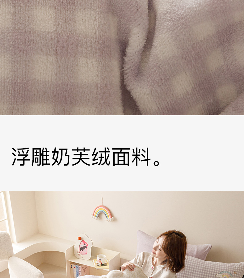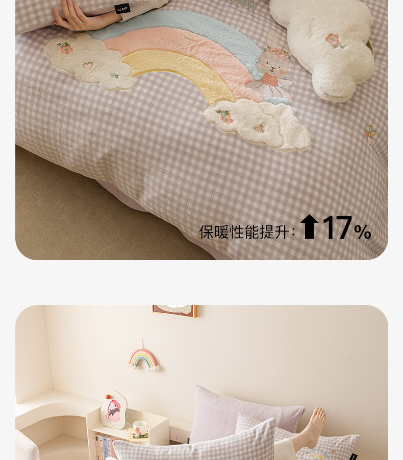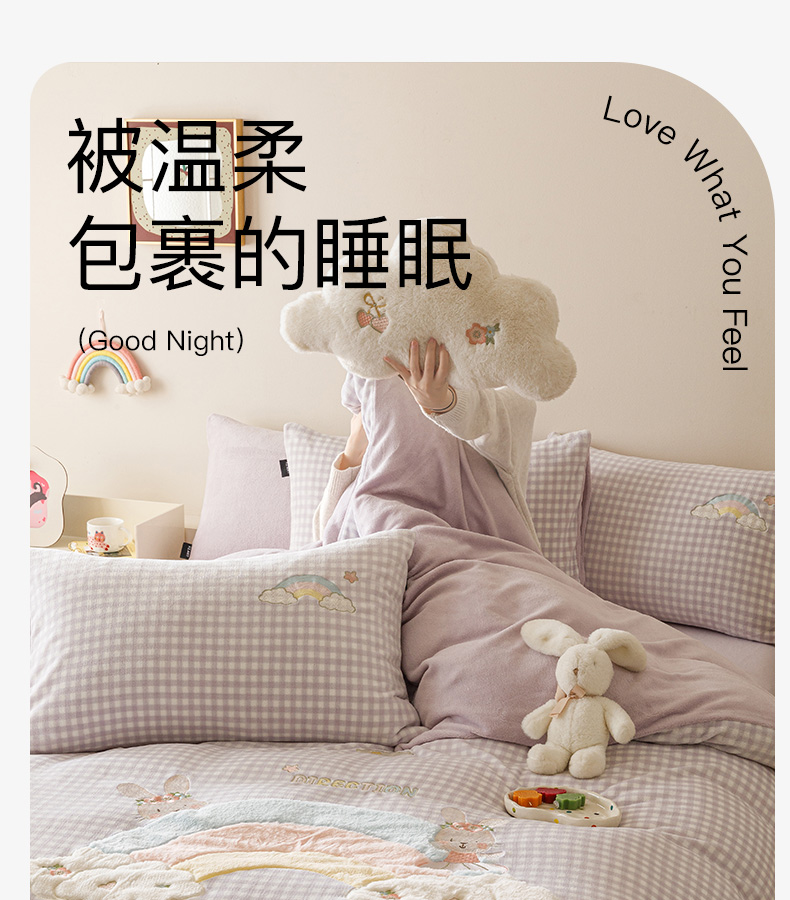 (总)卡姿家纺 2025秋冬德国奶芙绒萌趣贴布绣— 彩虹兔,彩虹兔-粉格,彩虹兔-蓝格,彩虹兔-紫格