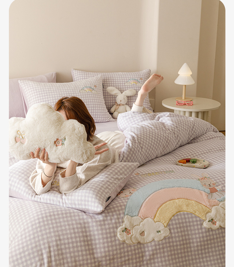 卡姿家纺 2025秋冬德国奶芙绒萌趣贴布绣— 彩虹兔 彩虹兔-紫格
