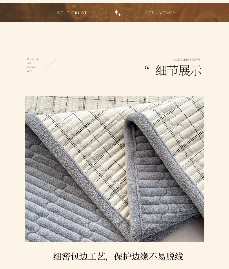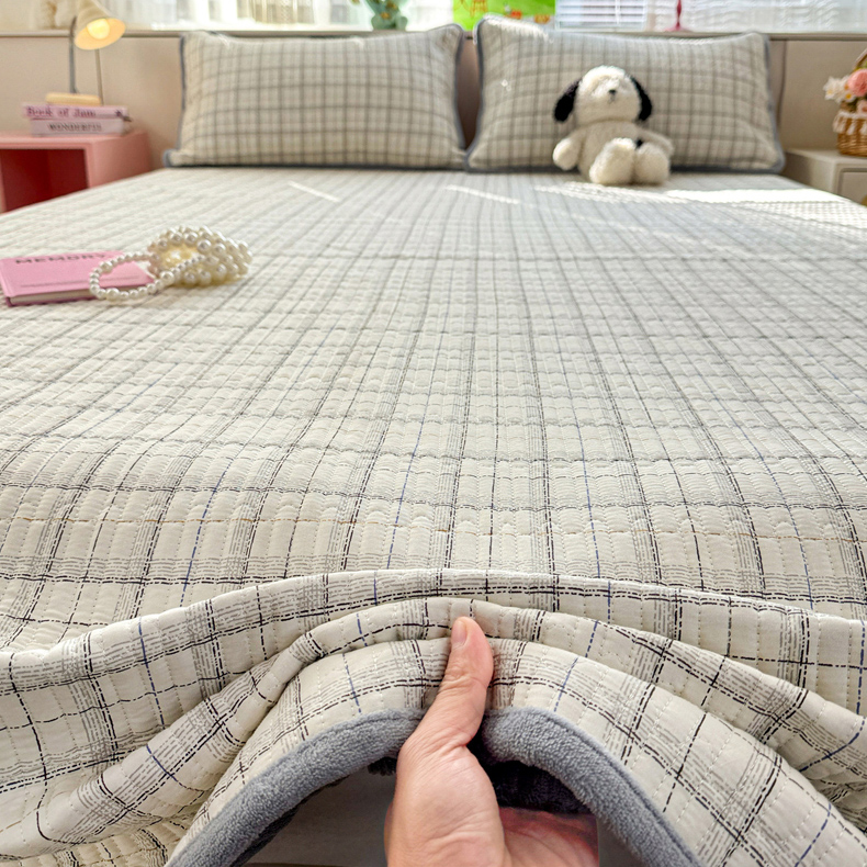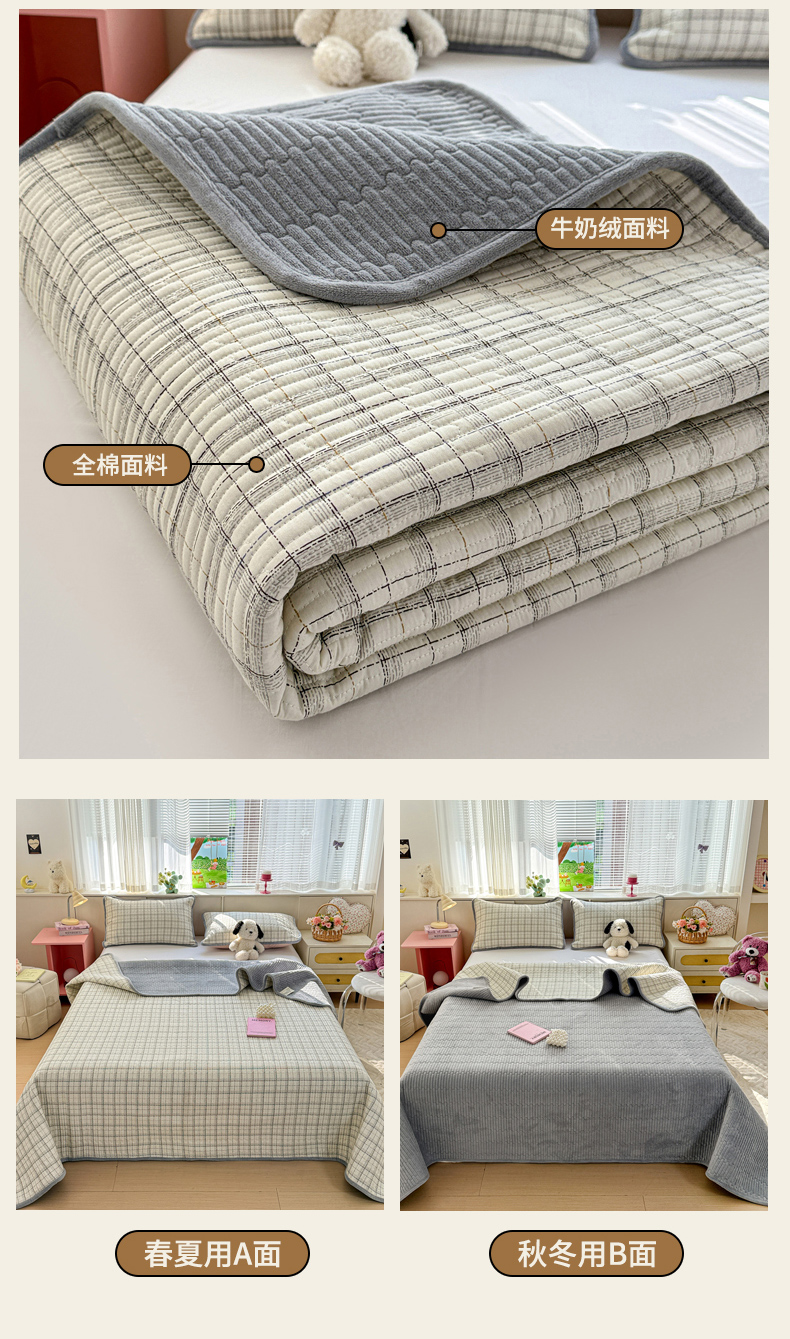 • 91家纺网 家纺一手货源 找家纺 恒尚居 2026新款纯棉牛奶绒床盖双面两用夹棉床单床垫-秋冬款 四季通用 简约格【A纯棉-B牛奶绒】