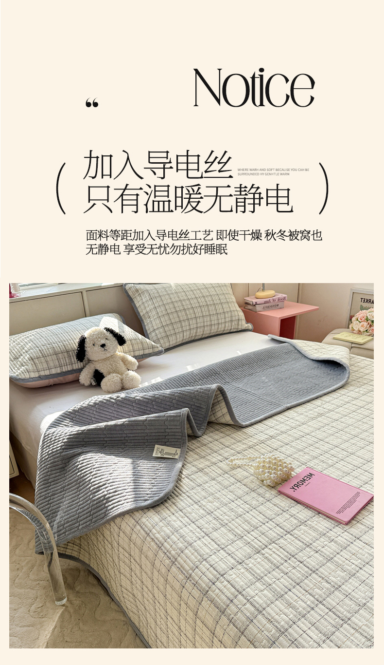 当前位置: 91家纺网 > 商品网购 > 床上用品 > 床盖 > 恒尚居 2026新款纯棉牛奶绒床盖双面两用夹棉床单床垫-秋冬款 四季通用 简约格【A纯棉-B牛奶绒】