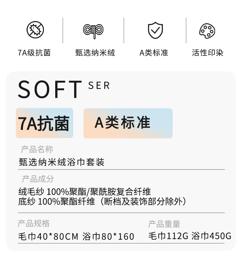 当前位置: 91家纺网 > 商品网购 > 居家日用 > 毛巾/浴巾/浴袍 > 浴巾方巾毛巾套件 > 娇兰毛巾 2025新款7A抗菌毛巾加大加厚纳米绒浴巾套巾 组合装-岱山绿 毛巾40*80cm+浴巾80*160cm