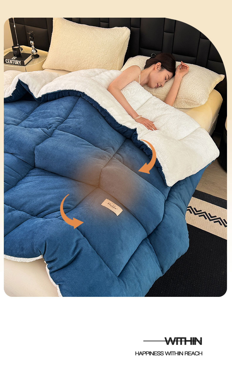 • 91家纺网 家纺一手货源 找家纺 天瑜家纺 2026新款180克牛奶绒羊羔绒冬被外贸被子电商跨境冬被被子被芯 蓝白