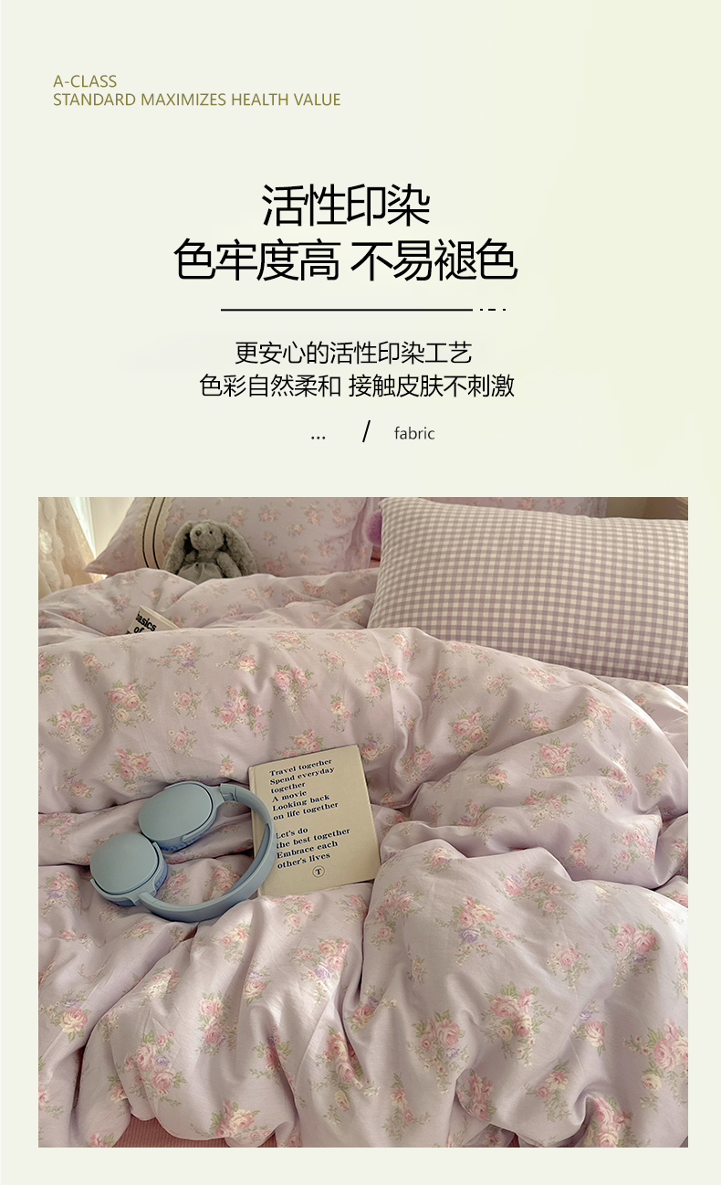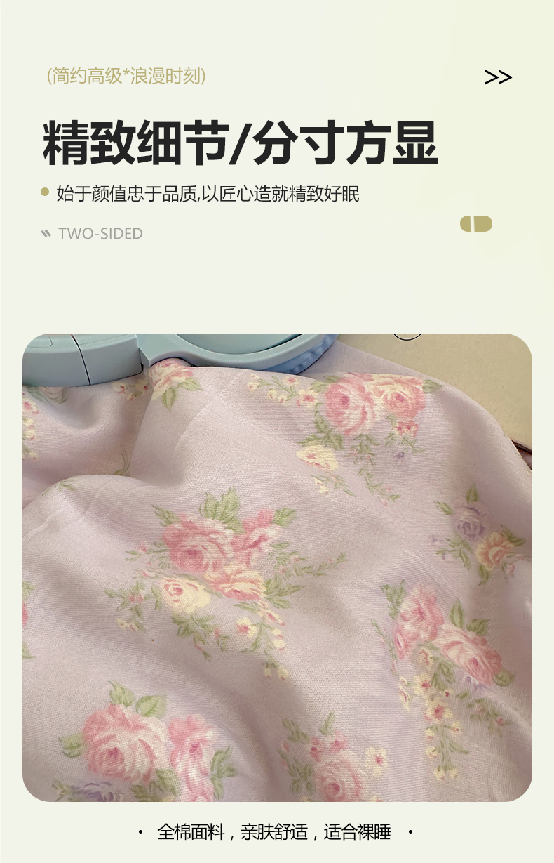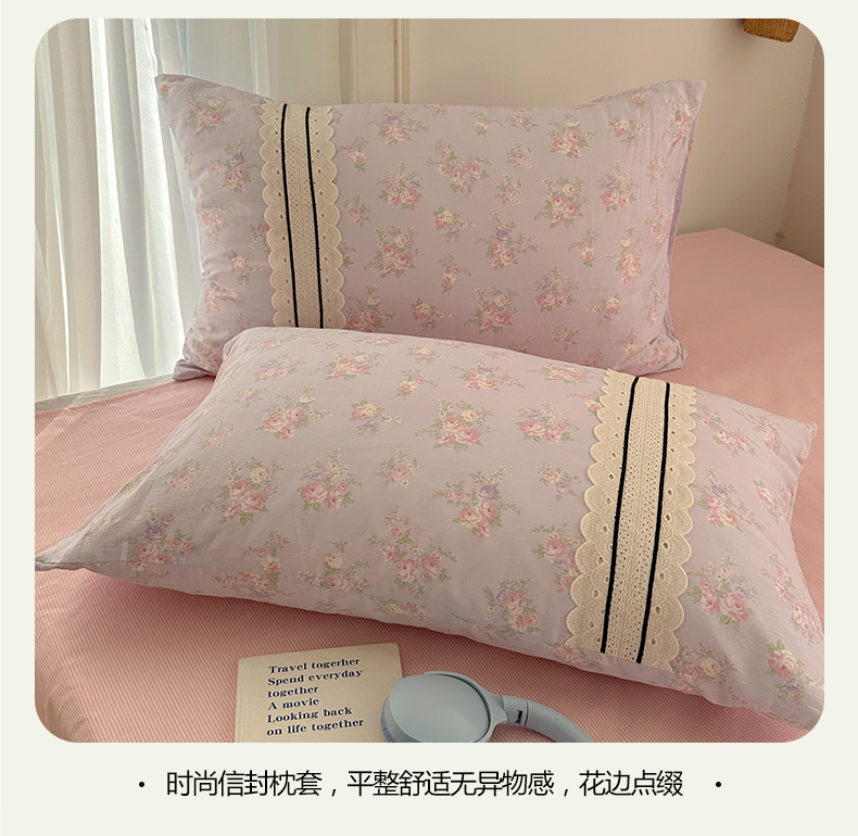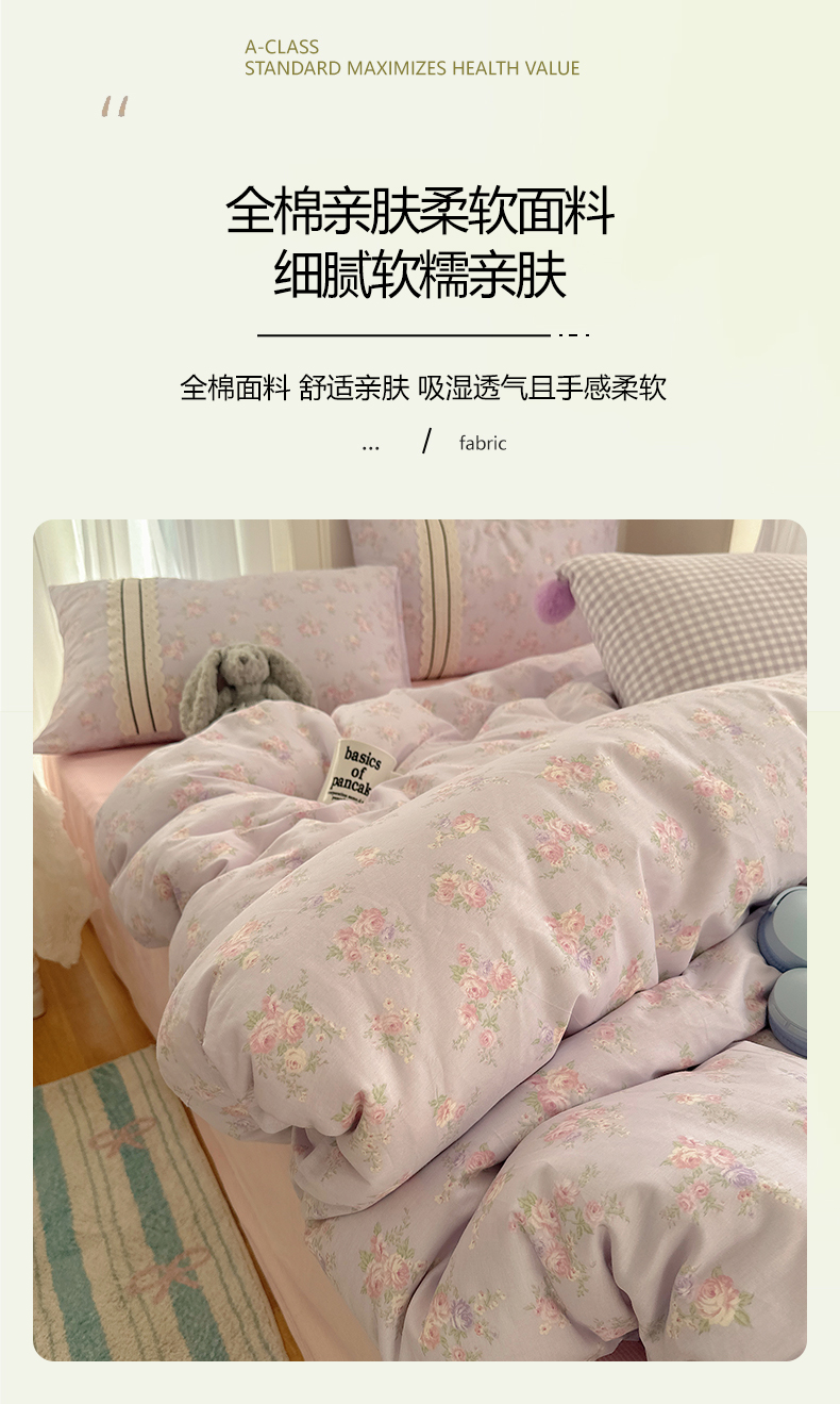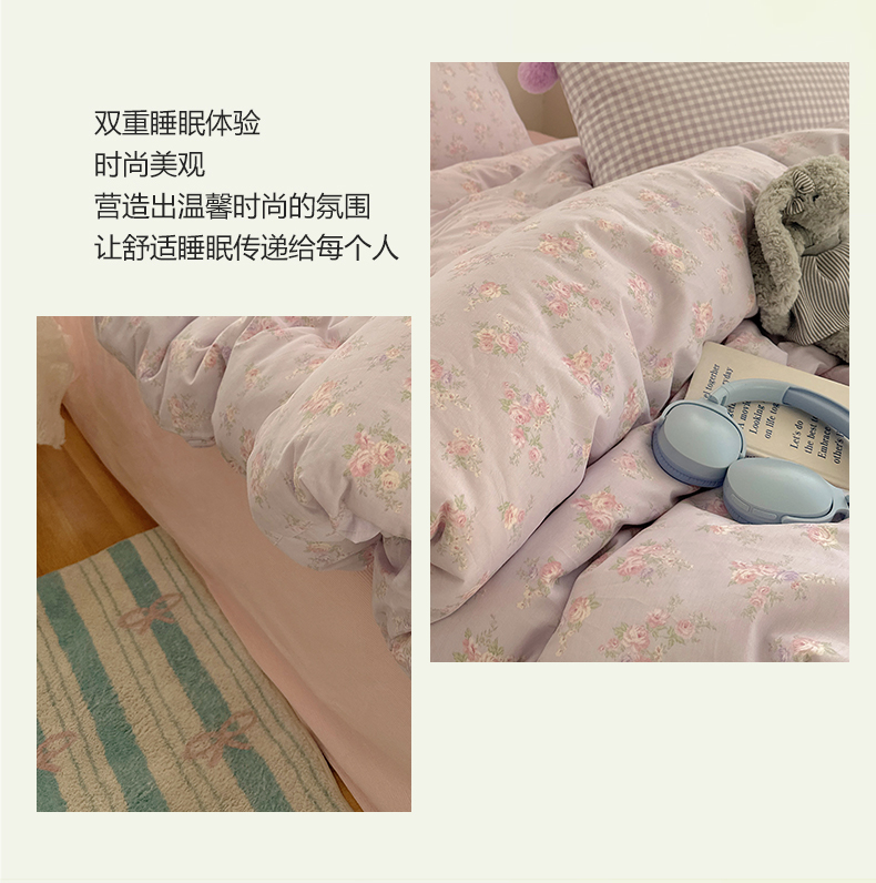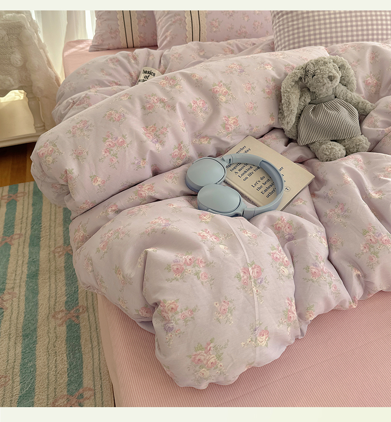 商品名称:三朵家纺 2026新款ins风全棉少女系花边印花系列四件套 花海迷人-紫