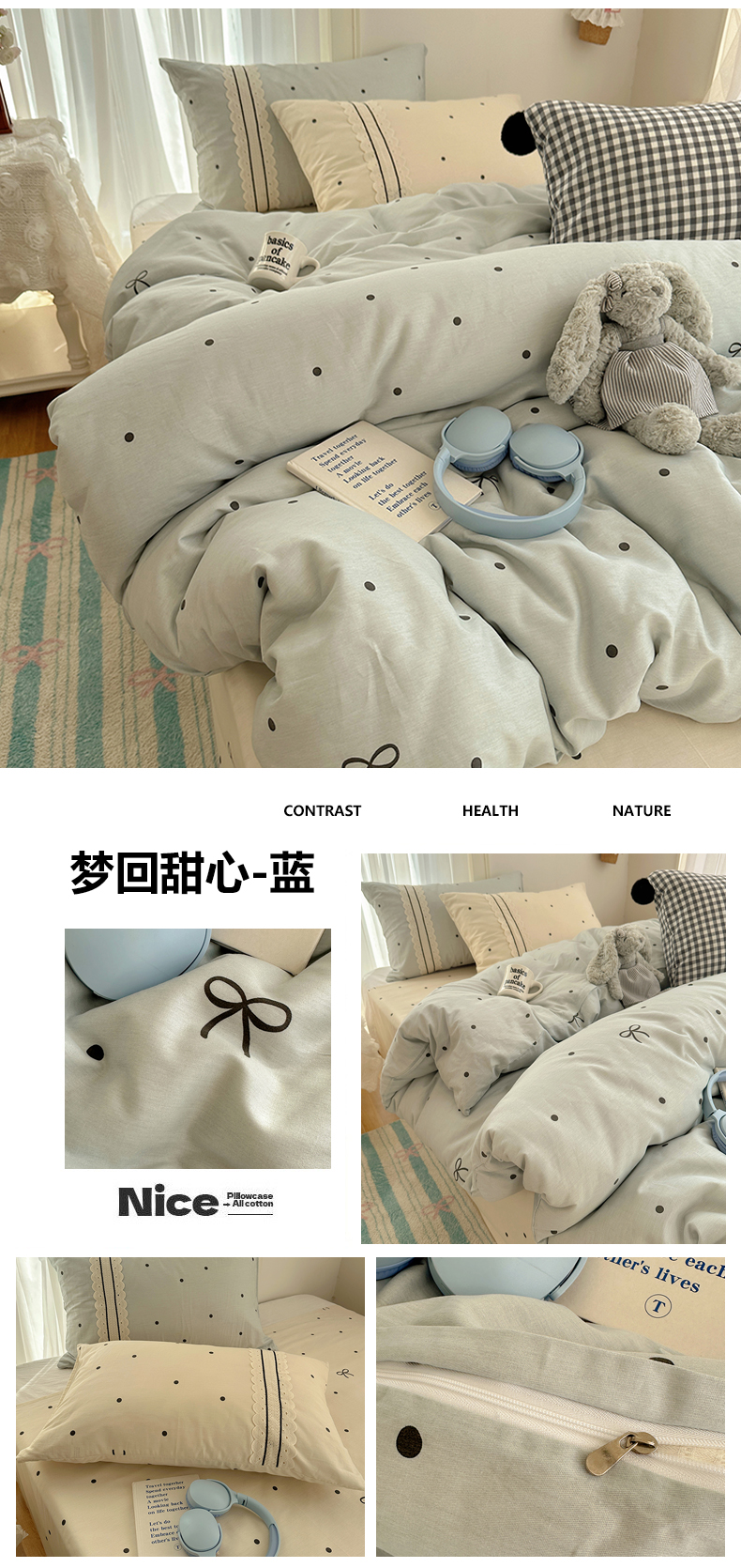 (总)三朵家纺 2026新款13070可爱INS风全棉四件套,芭蕾蝴蝶结,甜心樱桃,小樱桃-粉