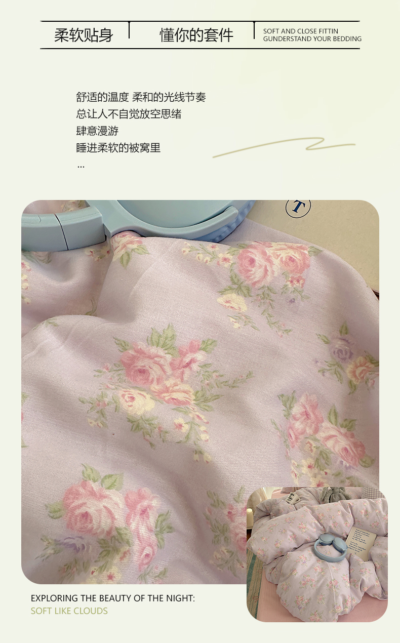 (总)三朵家纺 2026新款云柔水洗棉大花边A类韩版四件套,爱上樱桃,半岛玫瑰,草莓兔,梵高印象,花花熊仔,漫漫花香,沐语花朝,俏皮樱桃,青樱花梦