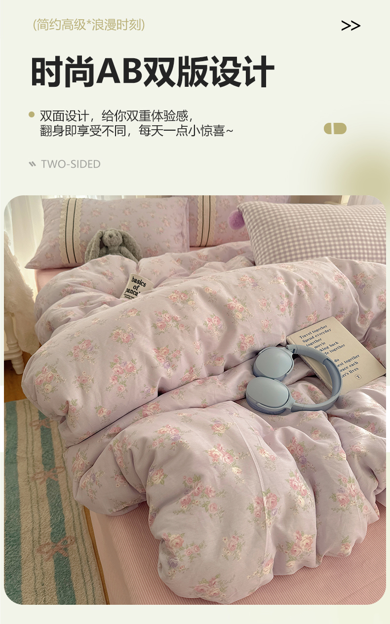(总)三朵家纺 2026新款水洗棉碎花INS博主风混搭全棉四件套,漫花,莫里,南乔