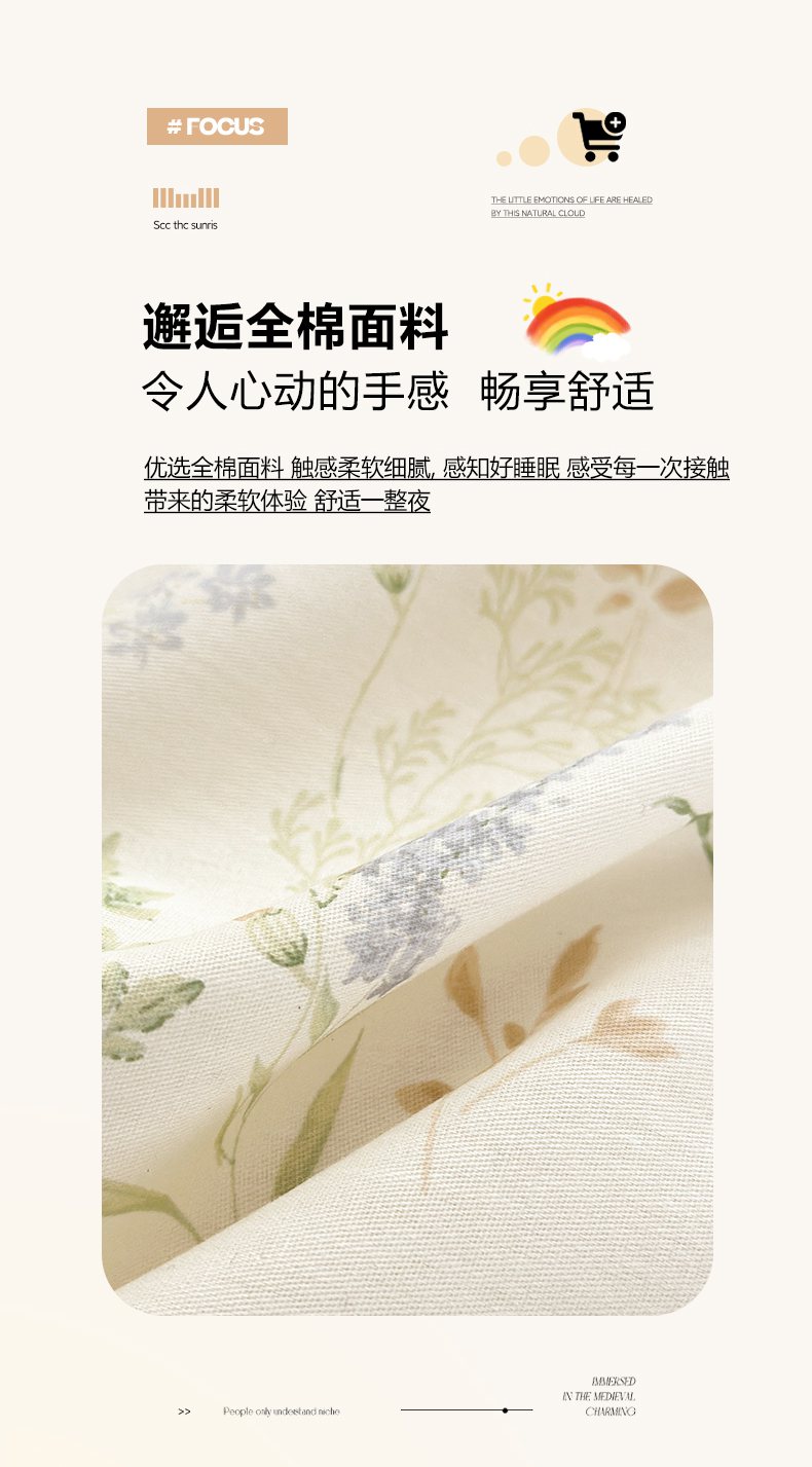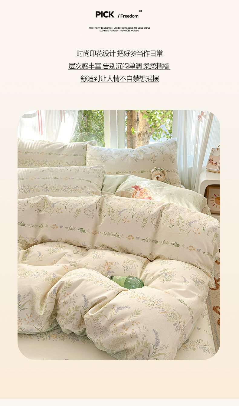 当前位置: 91家纺网 > 商品网购 > 床品套件 > 四件套 > 全棉普通四件套 > 清雅福 2025新款全棉柔软印花系列四件套 丛草集