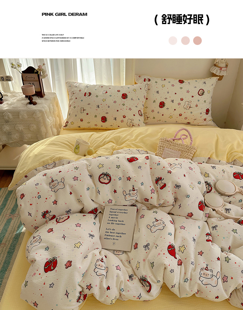 当前位置: 91家纺网 > 商品网购 > 床品套件 > 四件套 > 水洗棉四件套 > 初念 2025新款敲可爱的奶呼呼云感双层纱简约四件套系列超级治愈~ 苹果小怪