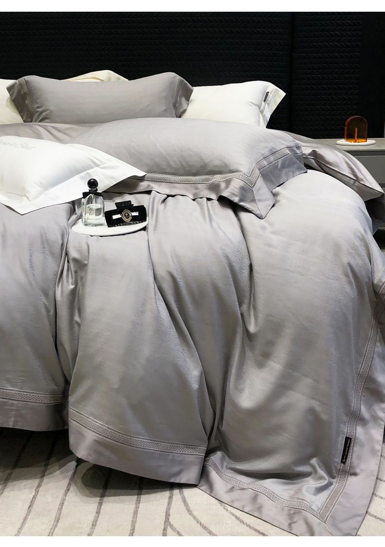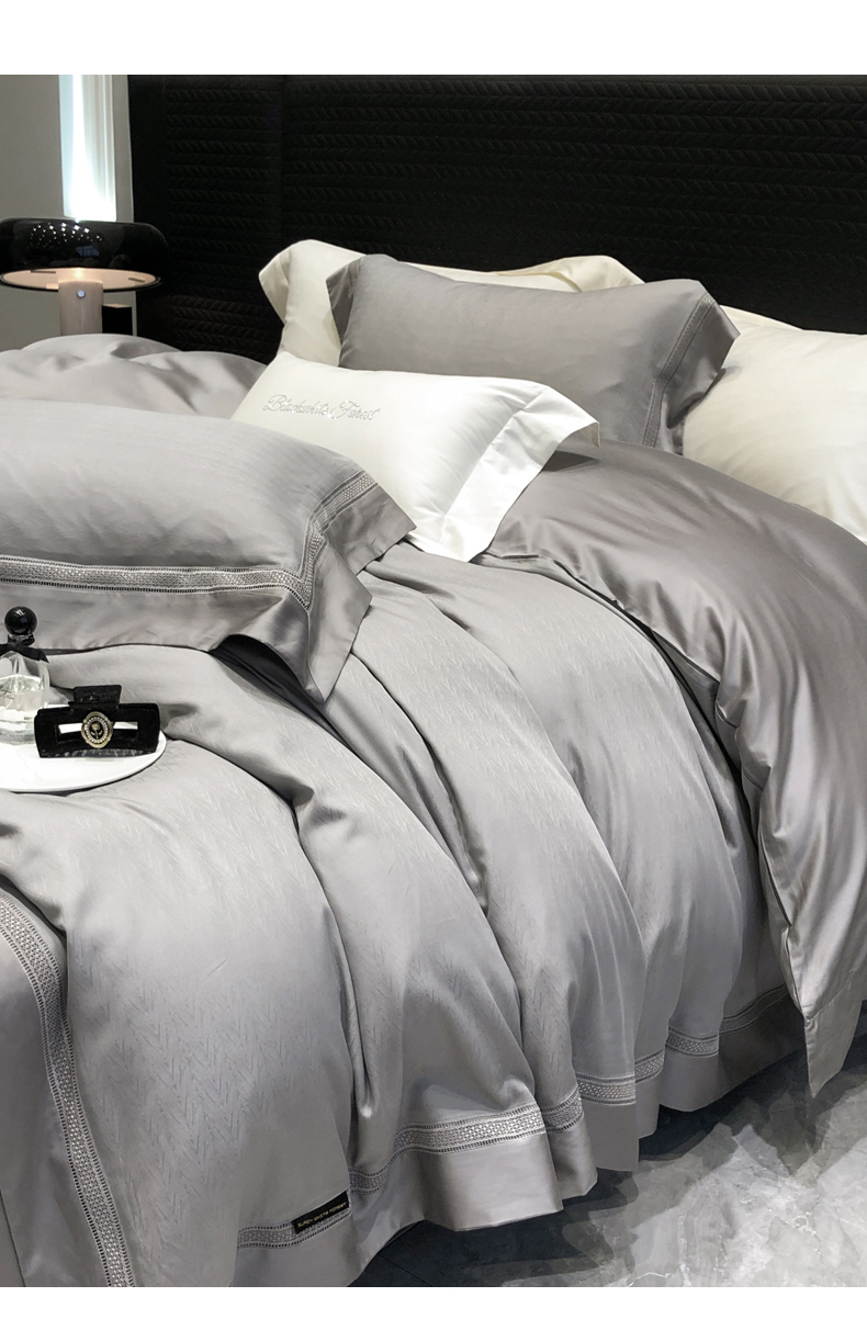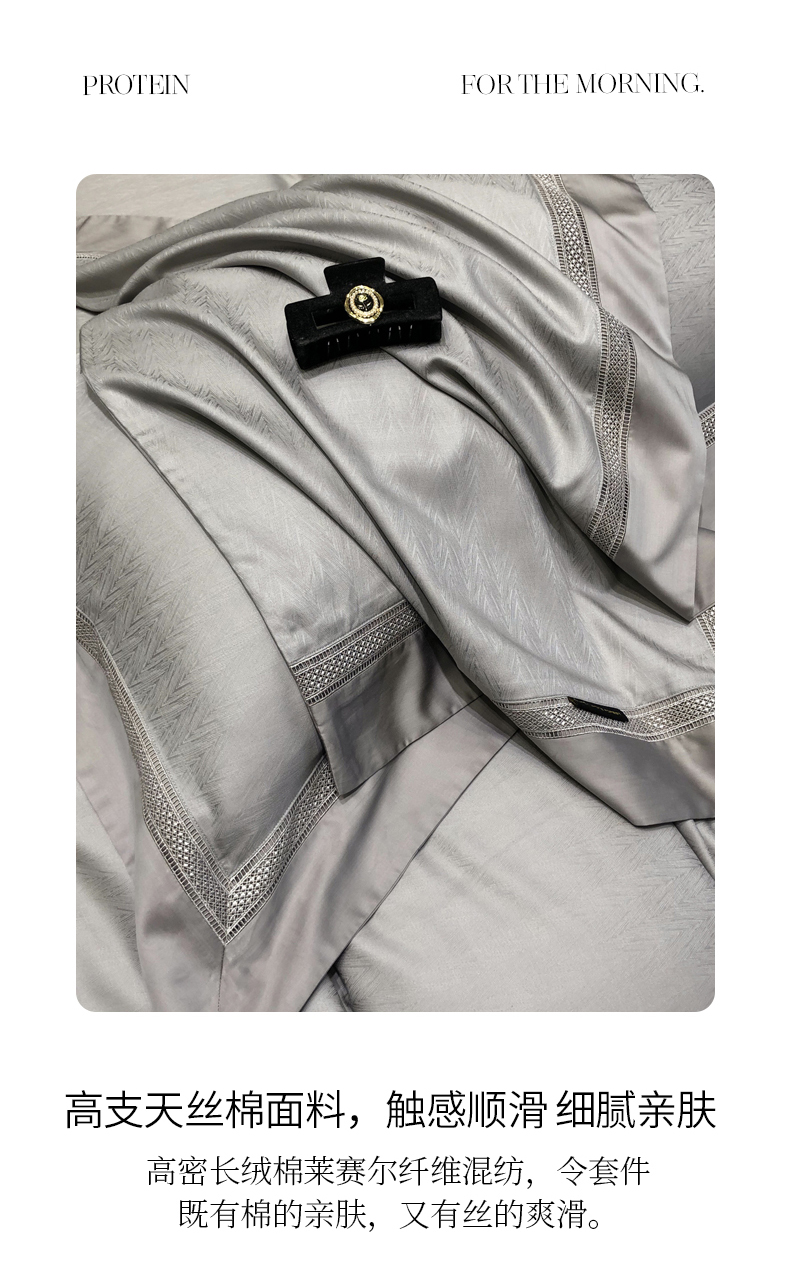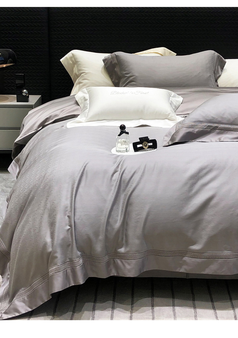 商品名称:黑白森林 2025新款80S超细旦天丝棉提花四件套 德尔尼-珍珠灰