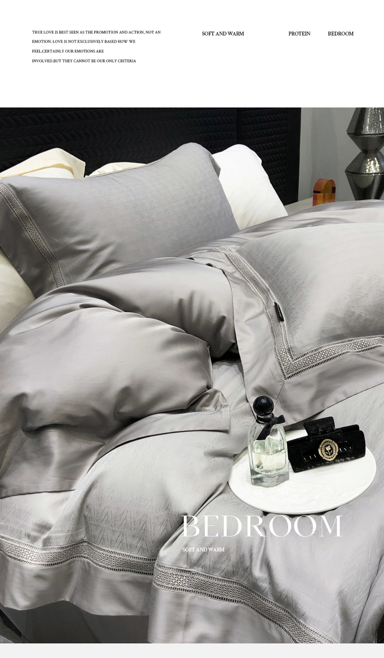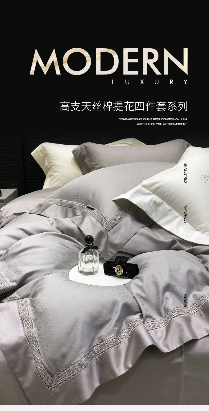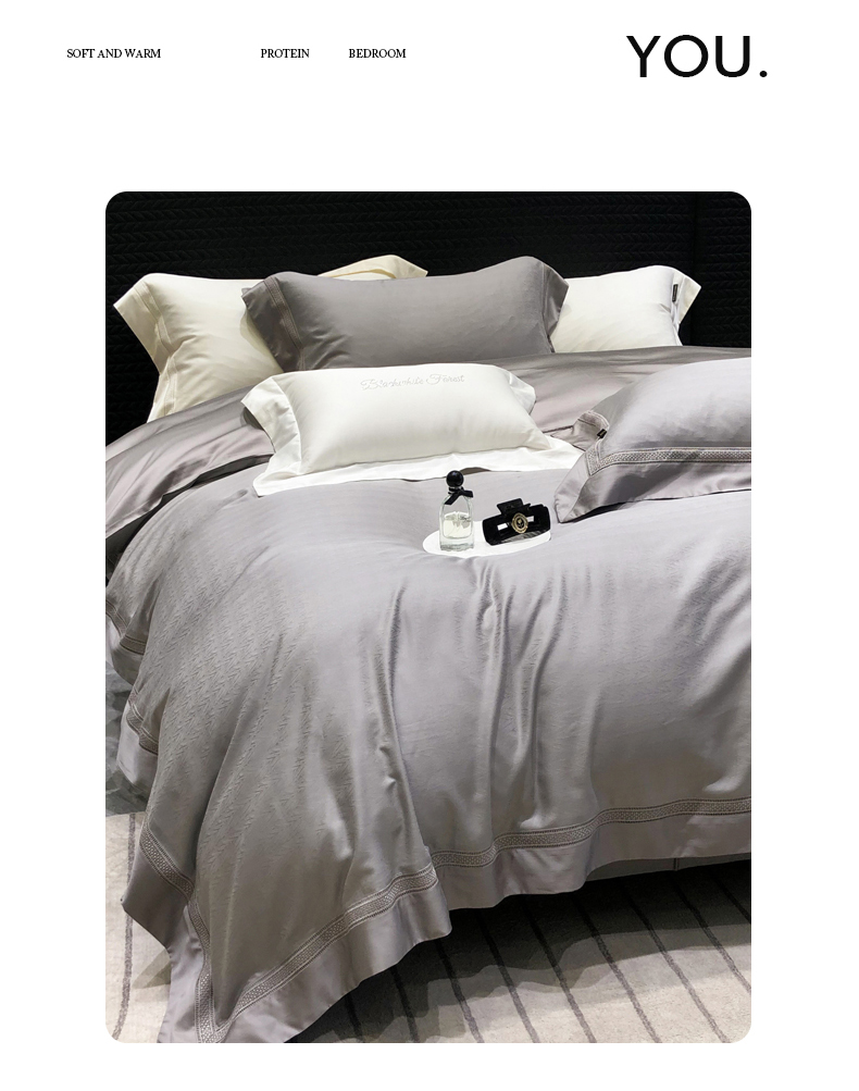 商品名称:黑白森林 2025新款80S超细旦天丝棉提花四件套 德尔尼-珍珠灰