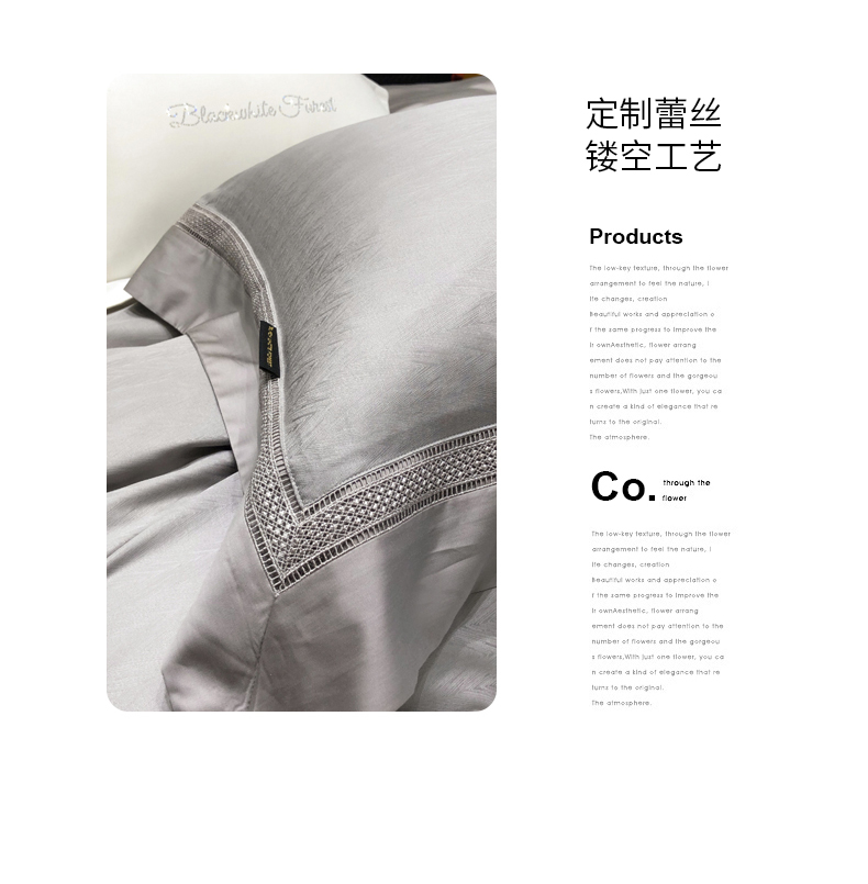 (总)黑白森林2024款 80X80S高支天丝棉四件套镂空蕾丝花边天丝全棉,尚美-晨夕粉,尚美-古象白,尚美-青砂绿,尚美-银雪灰