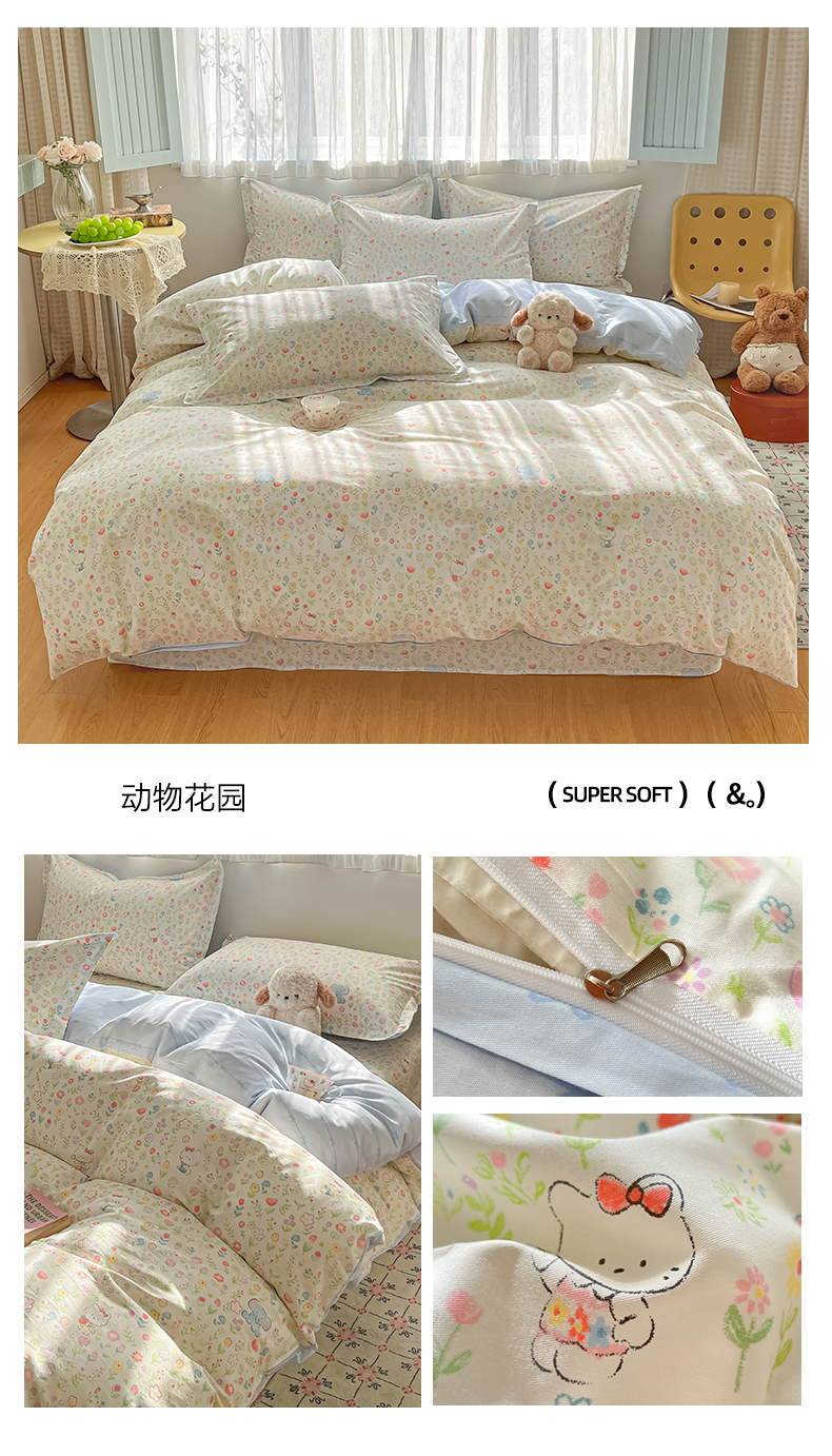 商品名称:花梦欣 2026新款全棉纯棉印花单品系列花卉款单被套被套单品单被套 动物花园