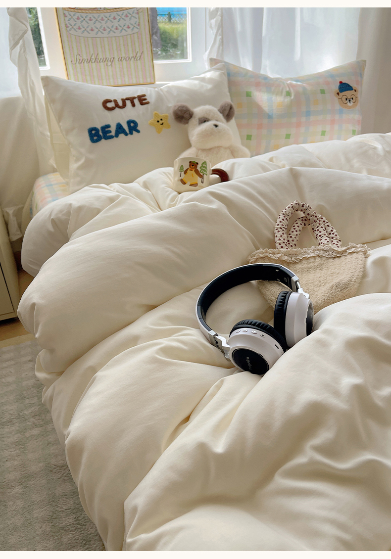 当前位置: 91家纺网 > 商品网购 > 床品套件 > 四件套 > 其它四件套 > 韩都家居 2026春夏新款卡通云朵棉毛巾绣四件套-系列一 小熊星星
